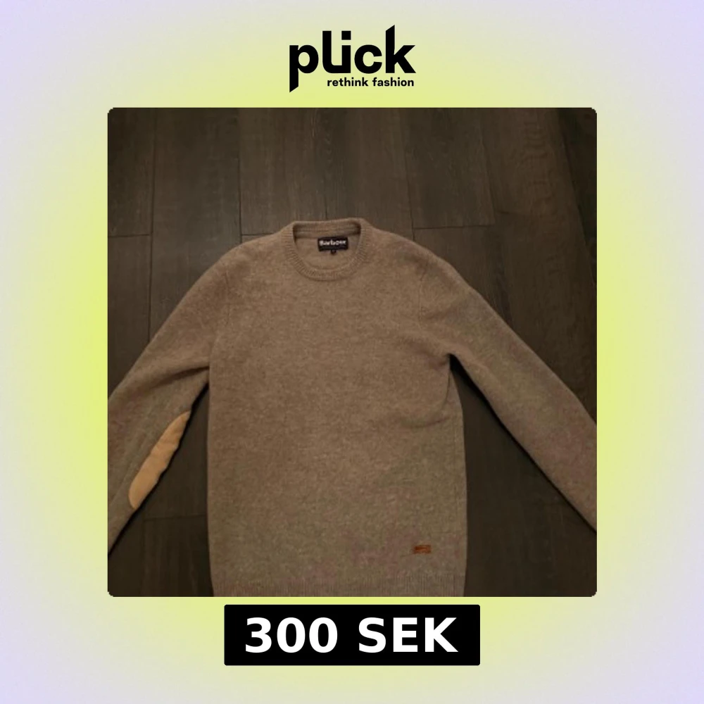 Säljer en stilren beige tröja från Barbour med rund hals och ribbade muddar. Tröjan har snygga armbågslappar i en ljusare nyans som ger en klassisk touch. Passar S