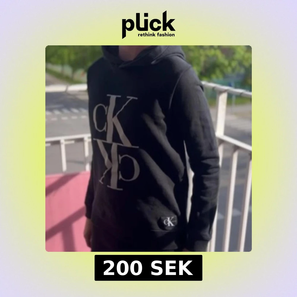 Säljer en svart hoodie från Calvin Klein Jeans med stor vit CK-logga framtill och en mindre logga nertill. Tröjan har huva och långa ärmar, perfekt för en stilren och avslappnad look. Storlek barn 14