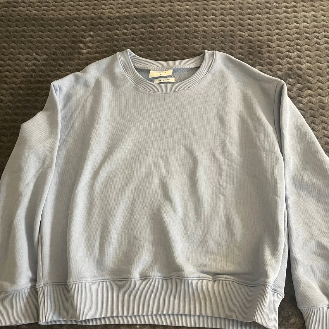 Säljer en ljusblå sweatshirt från Grunt i ekologisk bomull. Tröjan har rund halsringning, långa ärmar och ribbade muddar vid ärmslut och nederkant. Enkel och stilren design, perfekt för en avslappnad look. Aldrig använd och inga fläckar eller hål!!!❣️