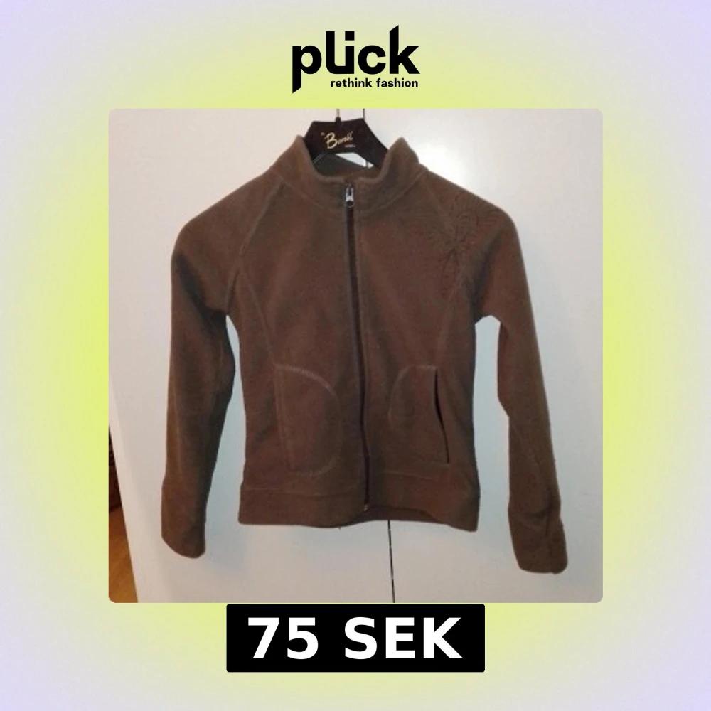 Mysig brun fleecejacka från Girl's wear med dragkedja framtill och två praktiska fickor. Jackan har en broderad detalj på bröstet och långa ärmar. Perfekt för kyliga dagar. Katt finns I hemmet.