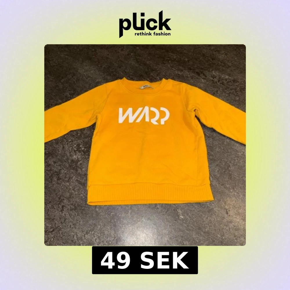 Snygg gul långärmad tröja från Warp med vit logotyp framtill. Tröjan har rund hals och ribbade muddar vid ärmslut och nederkant. Tillverkad i mjuk bomull som är skön att ha på sig. Perfekt för dig som gillar färg och enkel stil.