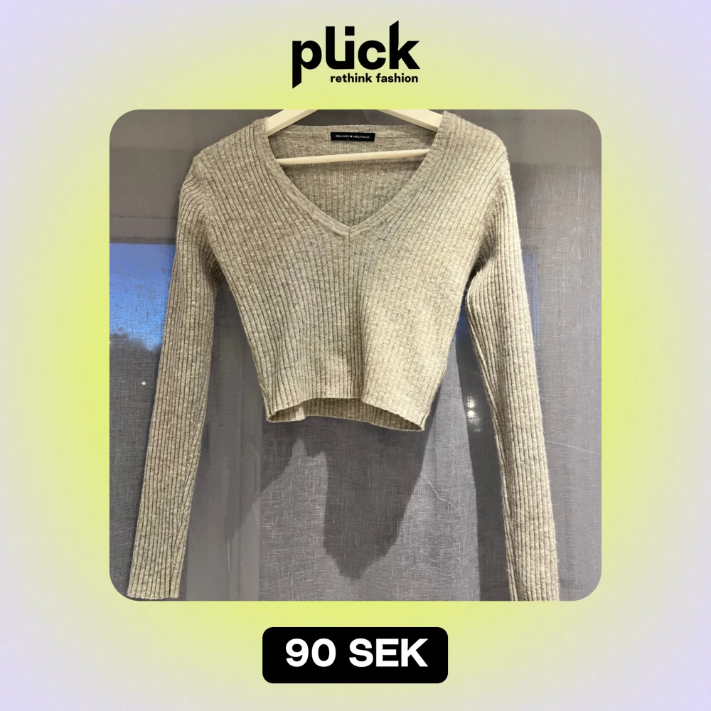 Grå, långärmad tröja som är lite stickad/ribbad. Från Brandy Melville så den är onesize men passar mig bra som har storlek S! Använd gärna köp nu 💕