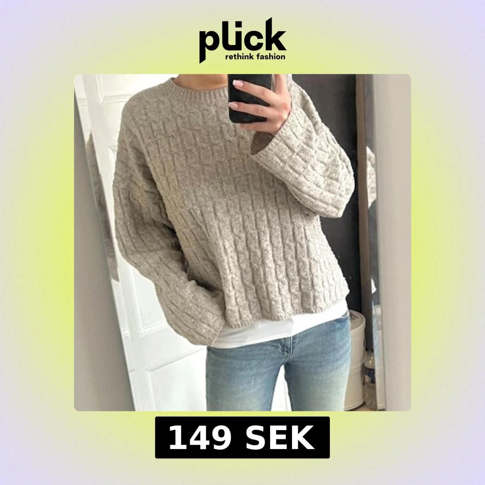 Säljer en mysig beige stickad tröja med kabelstickat mönster! Mycket bra skick utan defekter!