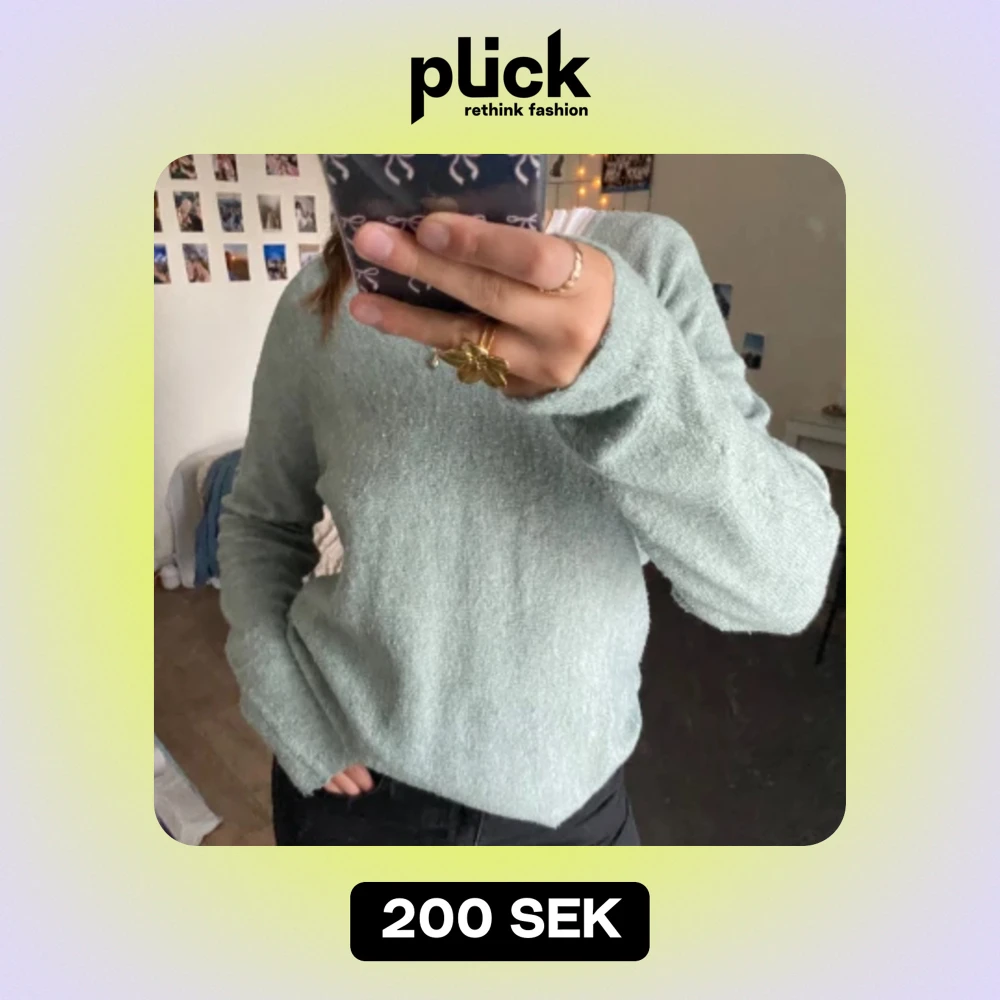 En ljusgrön v-ringad stickad tröja i storlek S. Knappt använd.