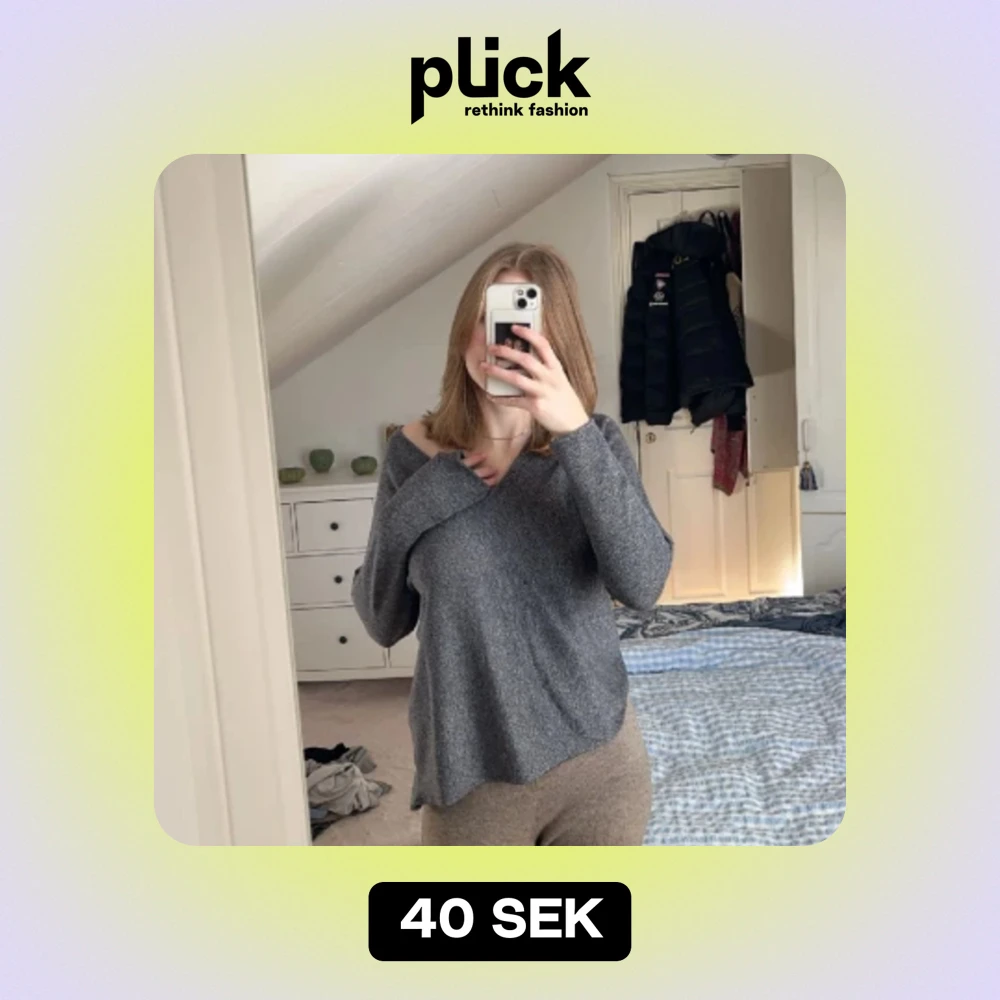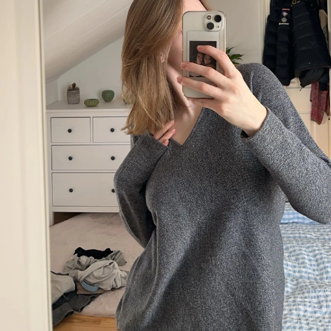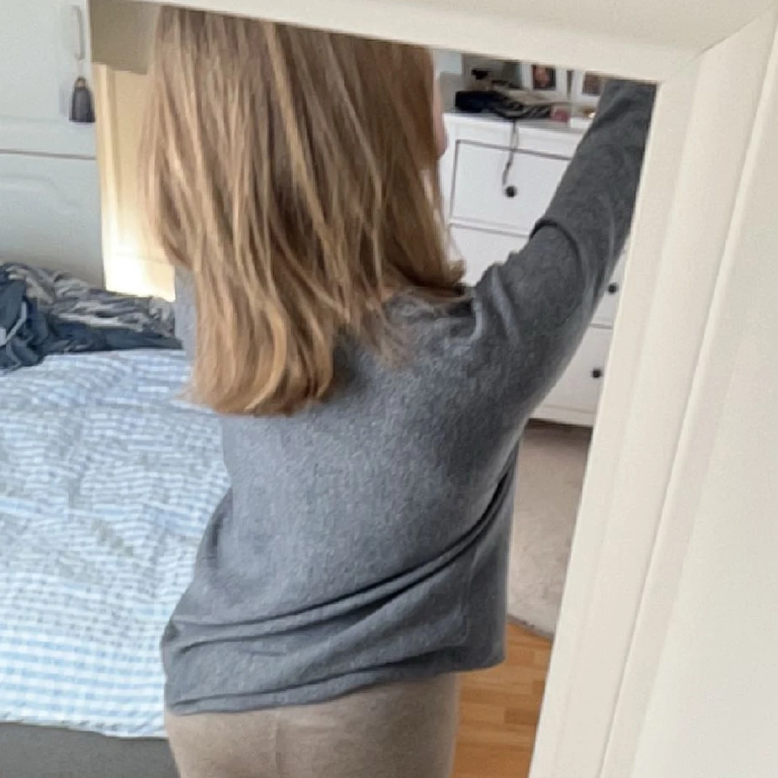 Gråblå bas stickad tröja som är längre baktill🫶🏼💘
