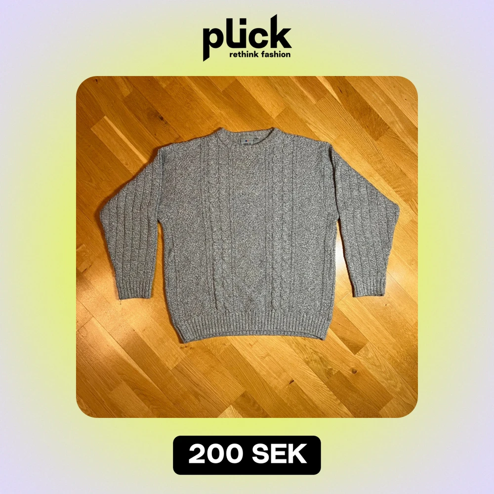 Säljer en snygg grå stickad tröja från Brice. Den har ett klassiskt flätmönster och är perfekt för kyliga dagar. Tröjan är i mycket bra skick och har långa ärmar med ribbade muddar. Perfekt för både höst och vinter! Köpt i Paris.