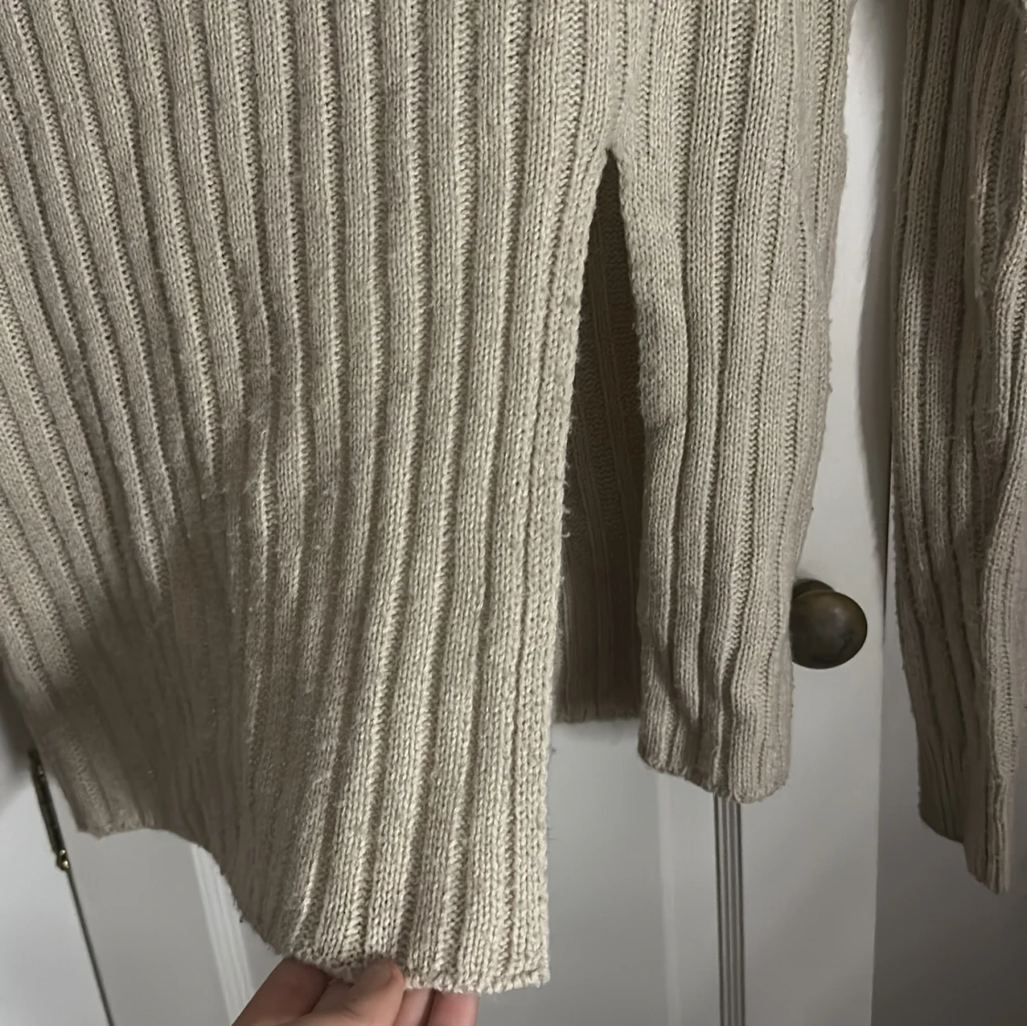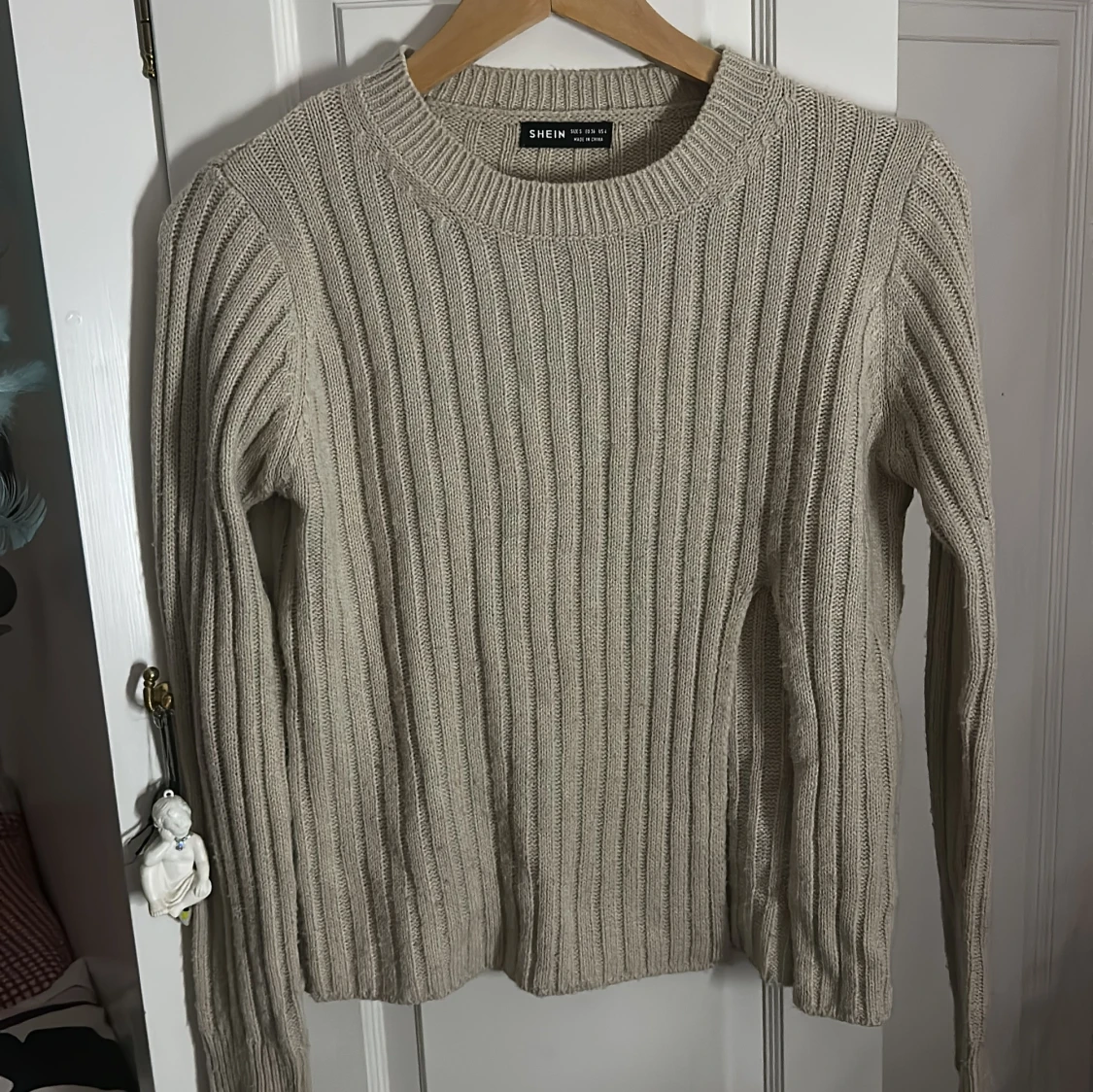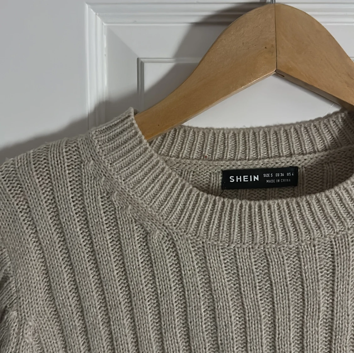 Ribbstickad beige tröja från SHEIN med rund halsringning och långa ärmar. Tröjan har en snygg slits i nederkanten på ena sidan och är i ett mjukt, stickat material som passar perfekt till höst och vinter. Den här är skit snygg beige tröja som är stickad perfekt till vinter och är väldigt mode idag tycker jag 🥰Den har inte används på cirka 3år och bara hängt i min garderob och jag hoppas att någon gillar denna tröja ‼️ Den är skön och man kan använda ett linne under ☺️