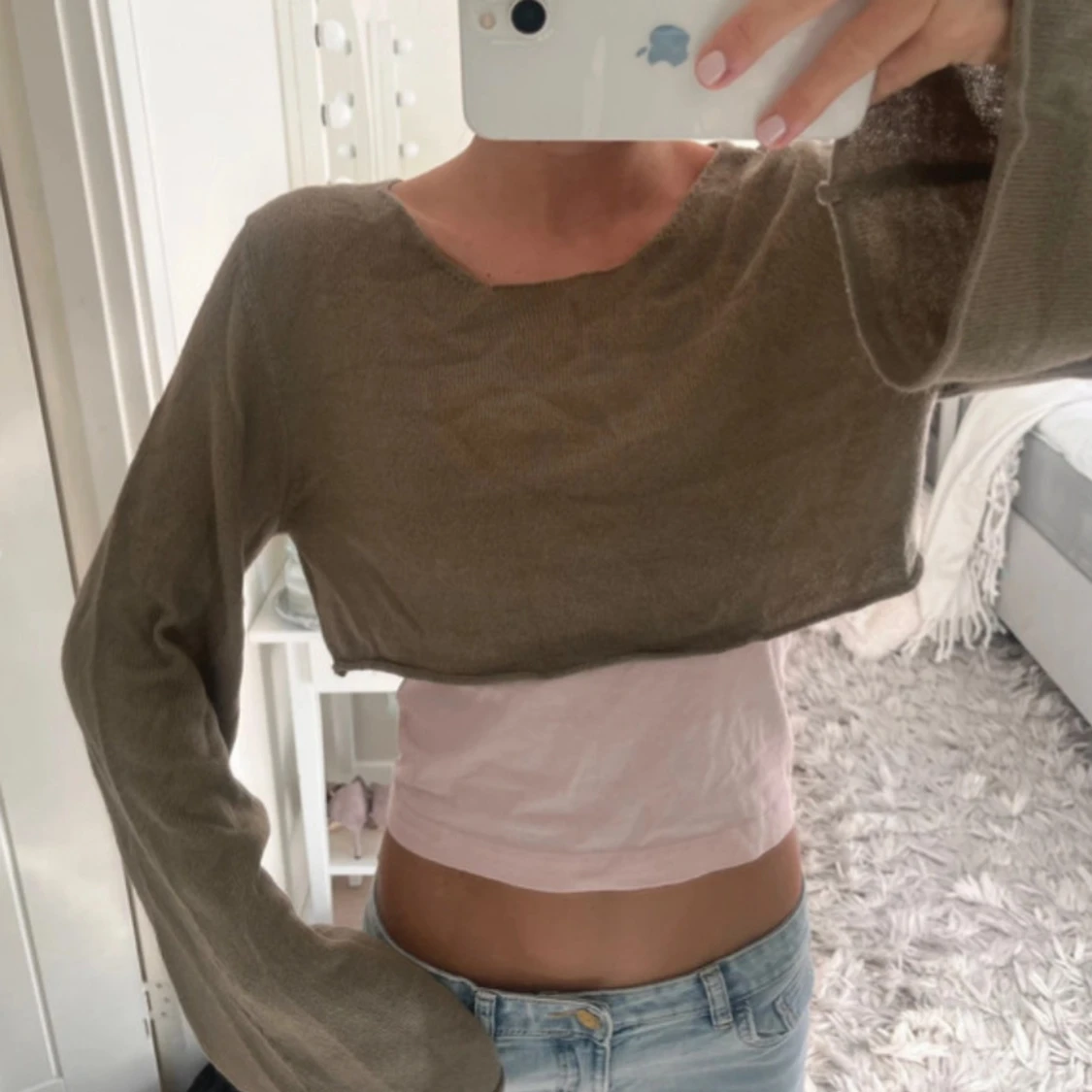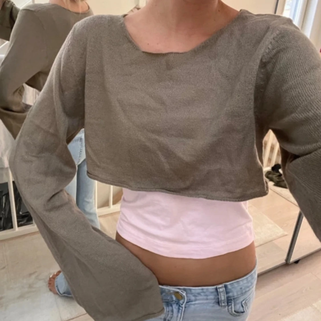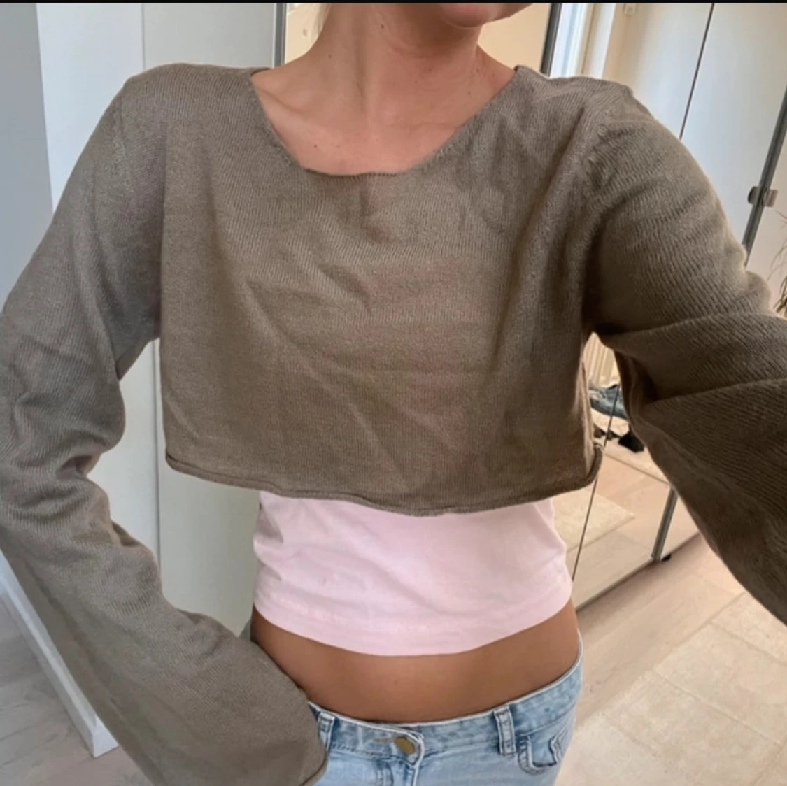 Finstickad kortare tröja/bolero med trumpetarmar från ASOS