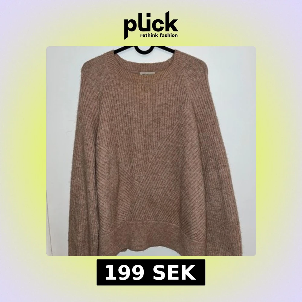Mysig beige/brun stickad tröja från WEEKDAY med rund hals, ribbad struktur och långa ärmar. Riktigt skön och varm! 🍁☕️