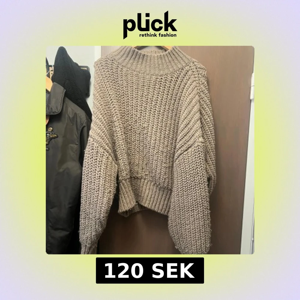 Säljer en beige chunky stickad tröja med oversized passform och bred ribbad krage. Tröjan har långa ärmar och grovstickat mönster som ger en riktigt mysig vibe. Perfekt för kyliga dagar och enkel att styla till jeans eller kjol.