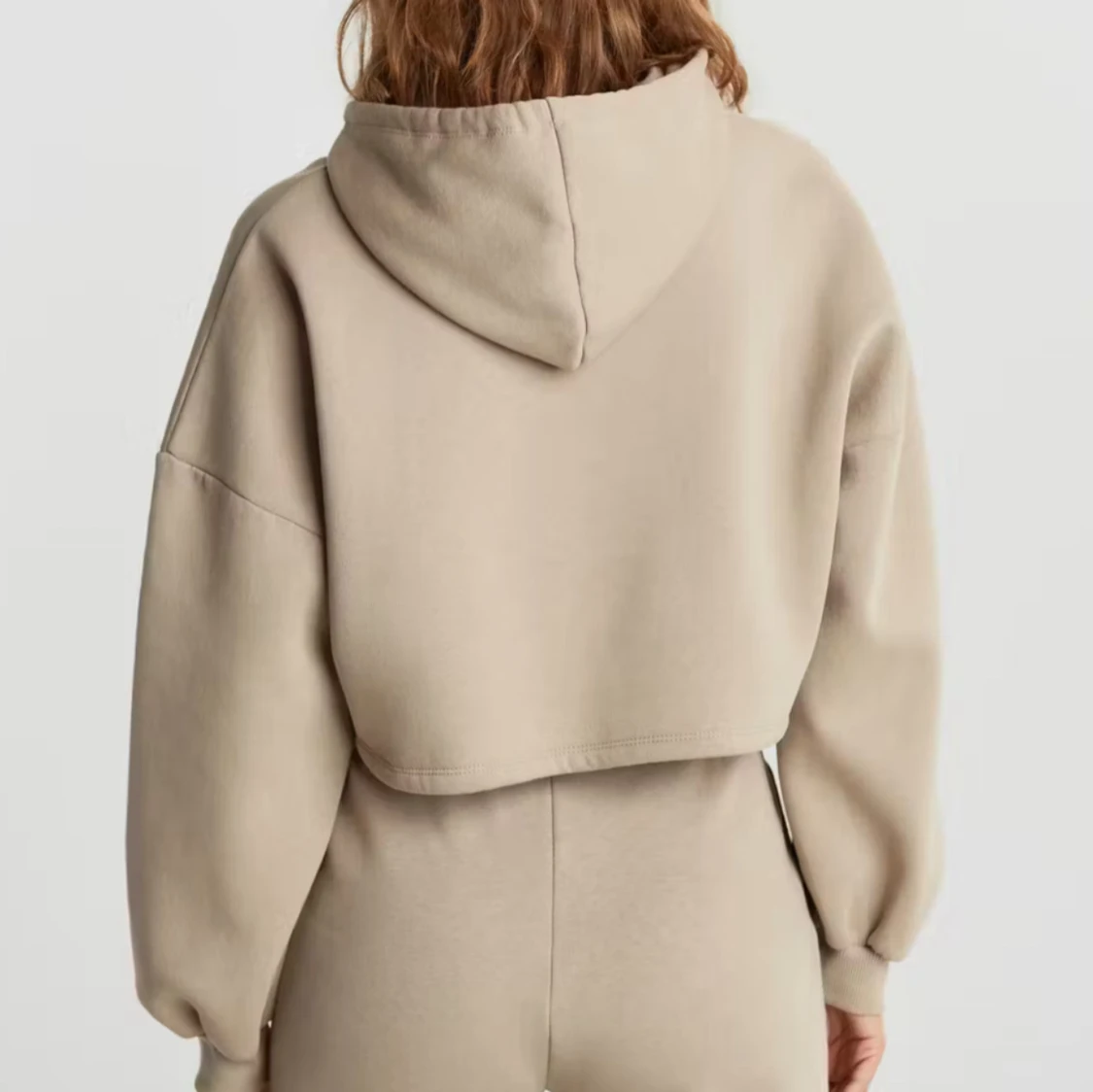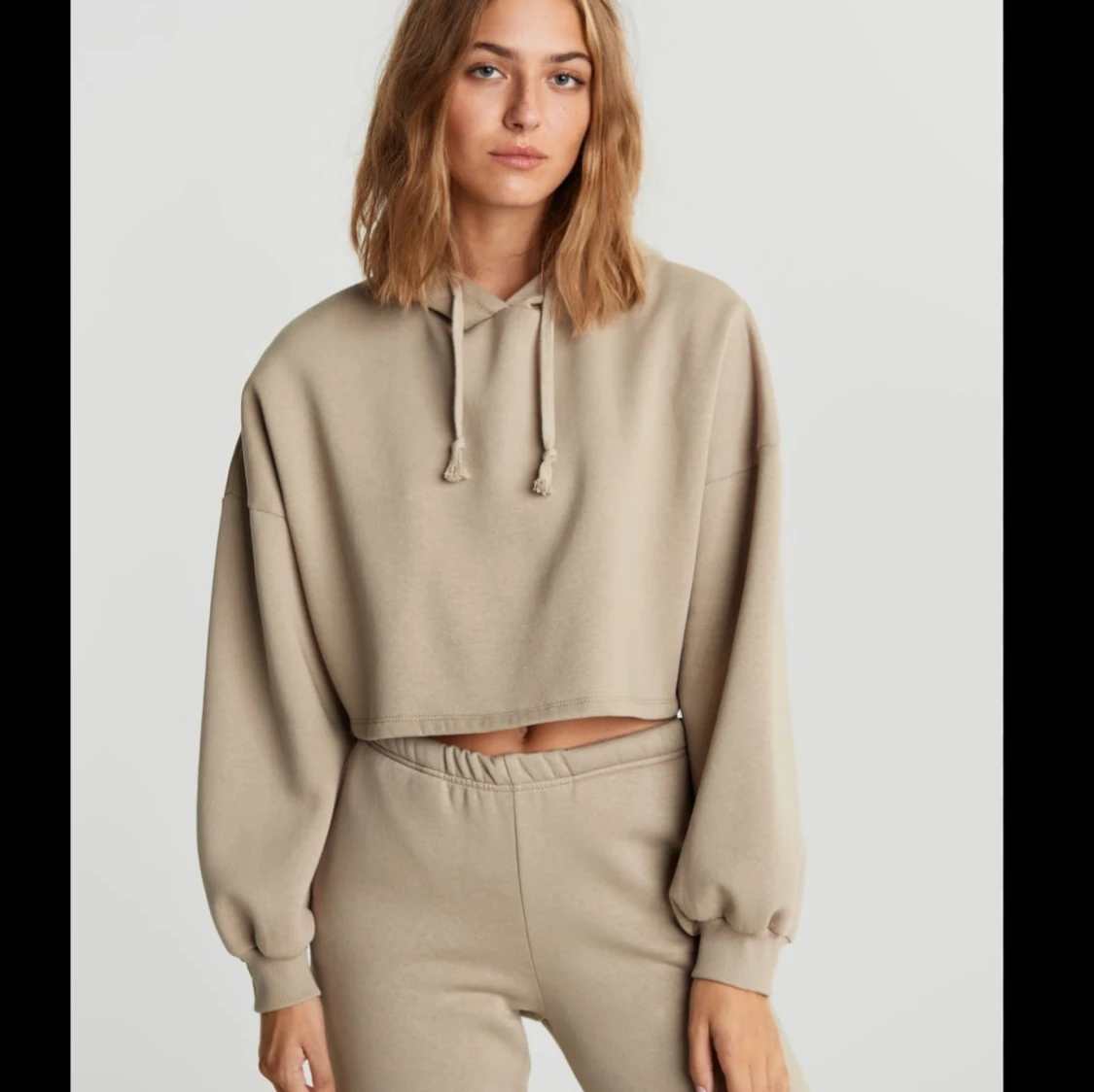 Säljer en supermysig beige croppad hoodie. Den har en avslappnad passform, långärmad, en justerbar huva med snören. Perfekt för en chill dag eller att matcha med dina favoritjeans. Materialet är mjukt och skönt, perfekt för höst och vår! Nypris 249kr