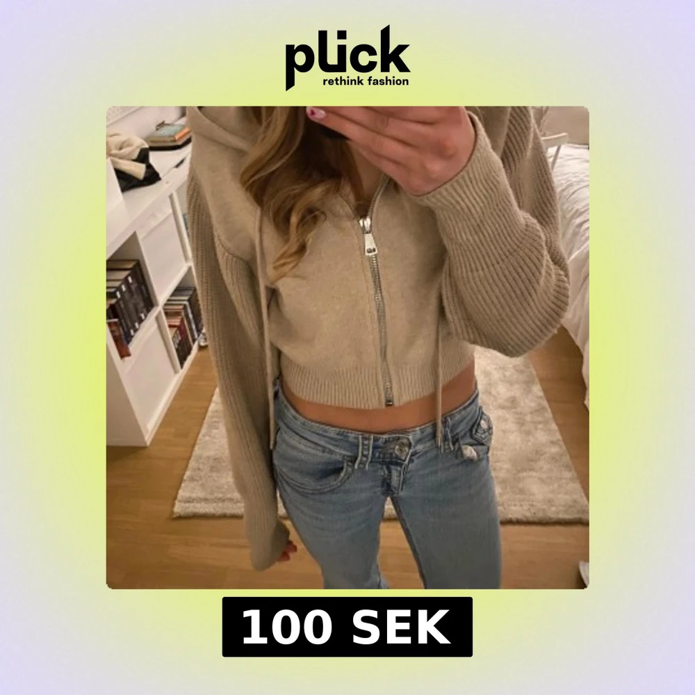 Säljer en beige croppad hoodie med dragkedja framtill. Den har långa ärmar och en mysig huva, perfekt för en avslappnad stil. Passar bra till jeans eller leggings. Super gosig! ❣️