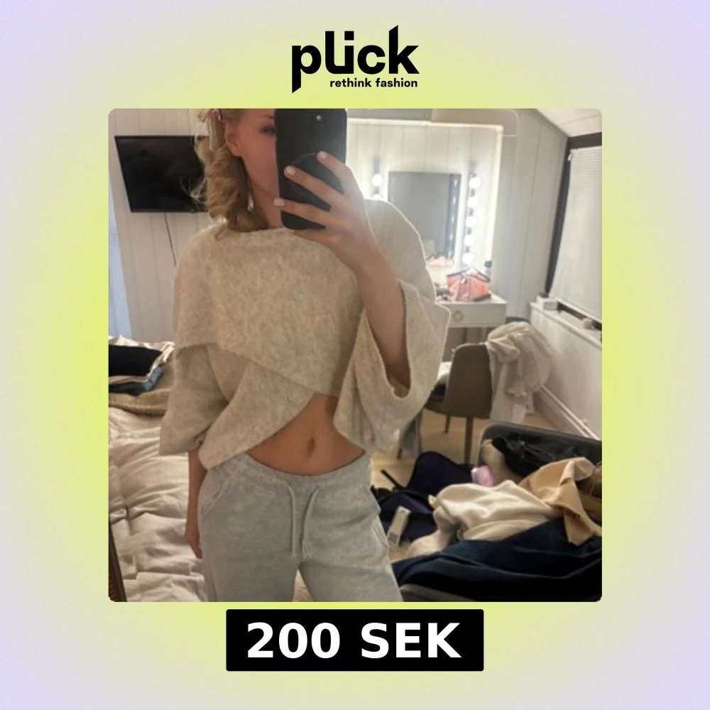 Beige croppad stickad tröja