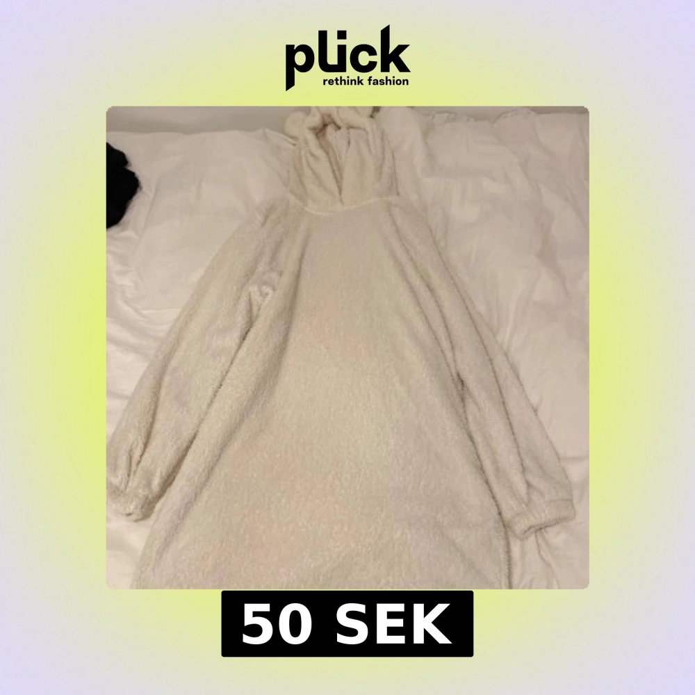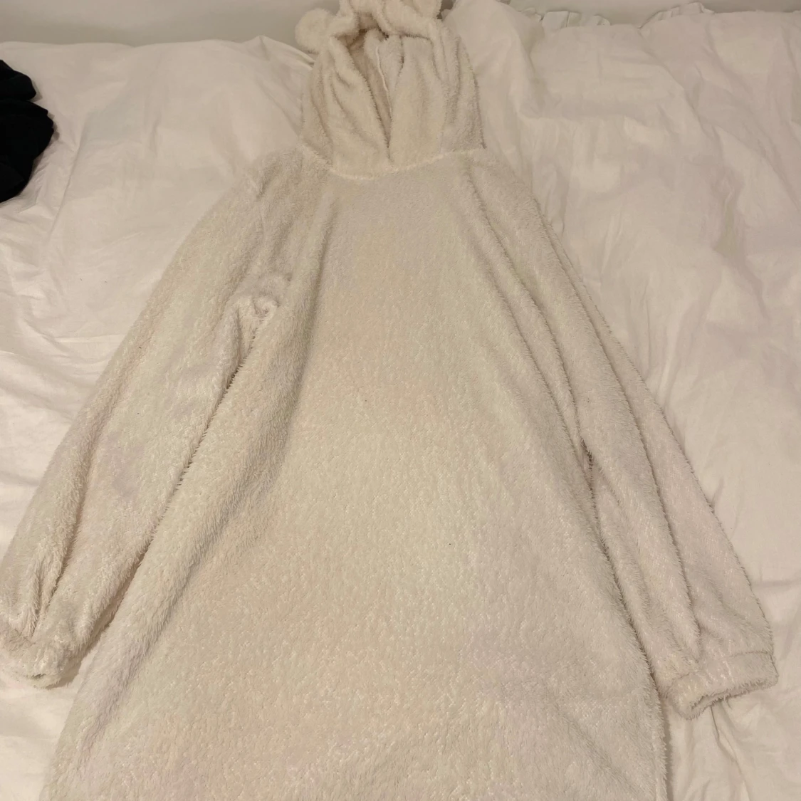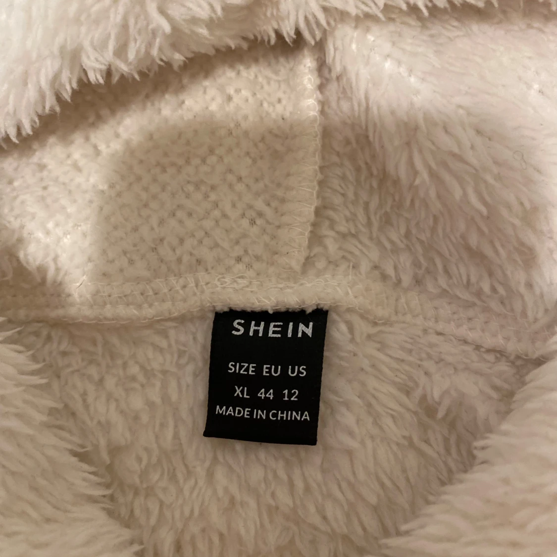 Supermjuk och oversized vit hoodie från SHEIN med fluffigt teddy-material. I storlek XL för o ha den overaized och lång. Huvan har söta öron och tröjan har långa ärmar med resår vid handlederna. Perfekt för myskvällar eller när du vill vara extra cozy.