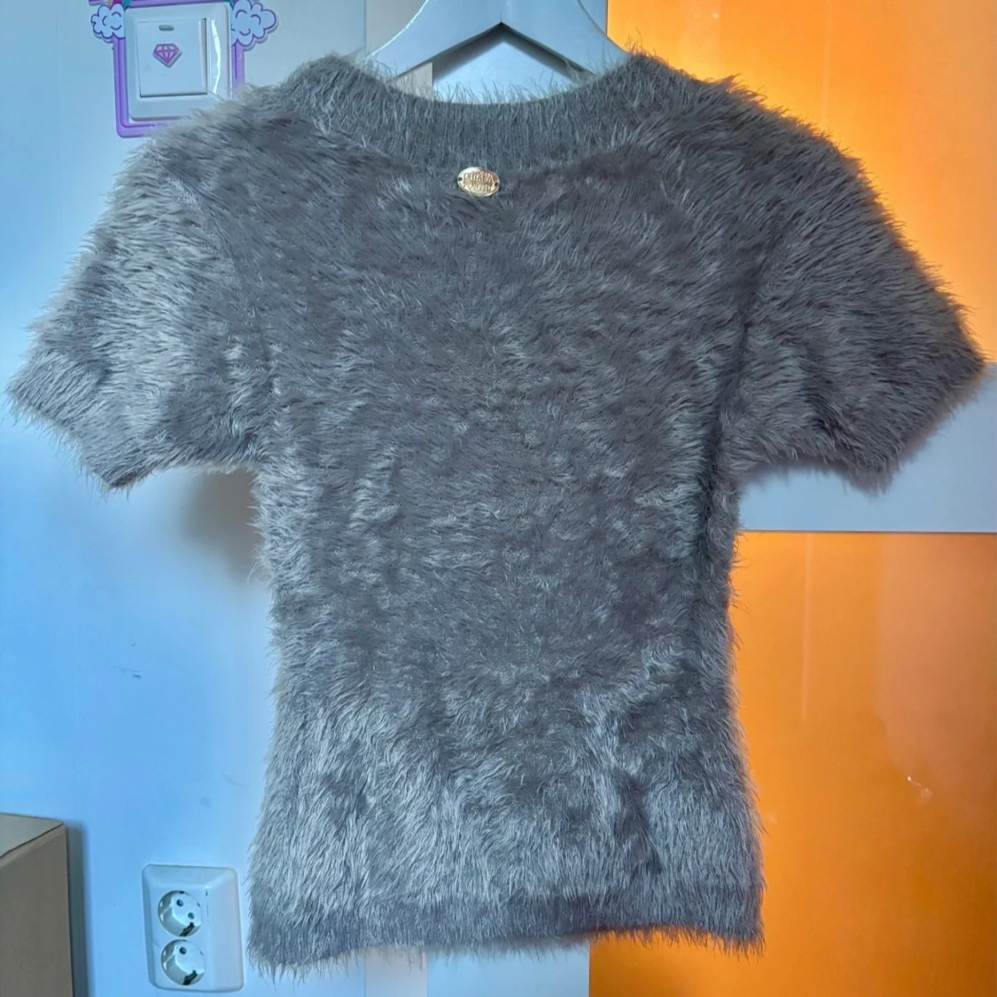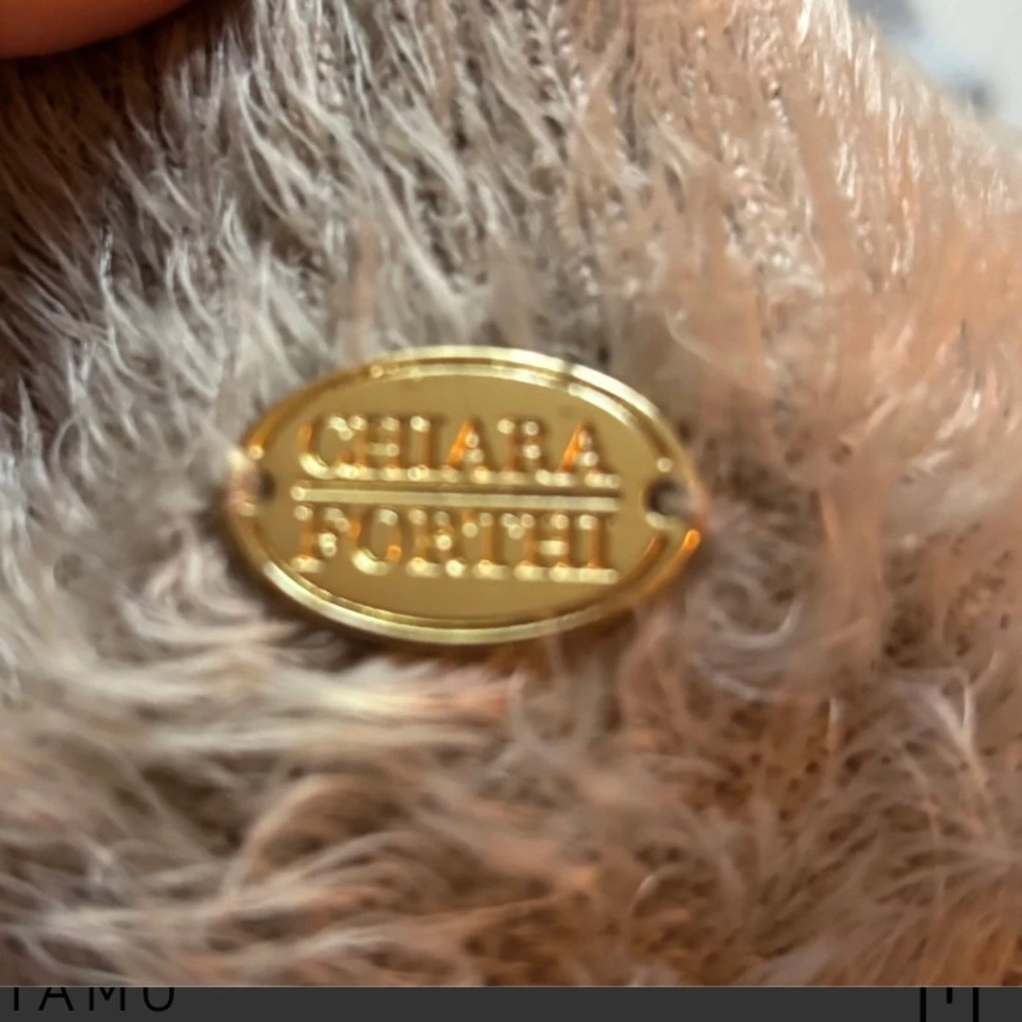 Supermjuk och fluffig beige tröja från Chiara Forthi Milano. Tröjan har korta ärmar, rund halsringning och är tillverkad i ett pälsliknande material som ger en unik look. Perfekt för dig som vill sticka ut med en cozy vibe.