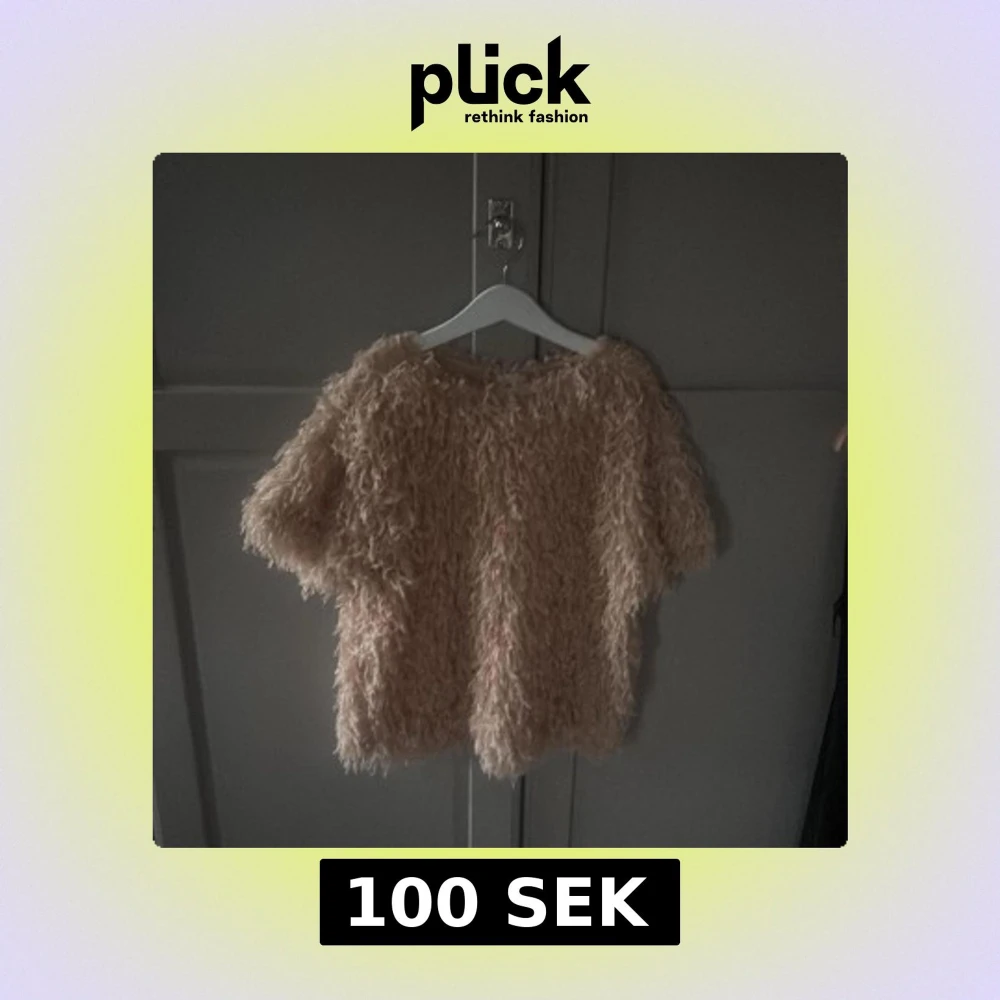 Supermjuk och fluffig beige tröja från Zara med korta ärmar. Tröjan har en cool pälsliknande look och är perfekt för dig som vill sticka ut med en mysig och trendig stil. Passar lika bra till jeans som till kjol.