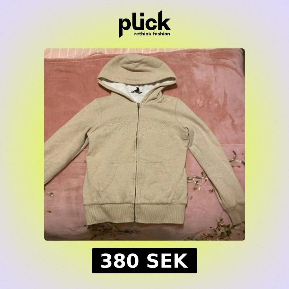 Mysig och skön beige hoodie från Tommy Hilfiger i storlek XS. Tröjan har broderad Hilfiger-text på bröstet, huva och dragkedja framtill. Insidan är fodrad med vitt, fluffigt foder som gör den extra skön. Jättebra skick!