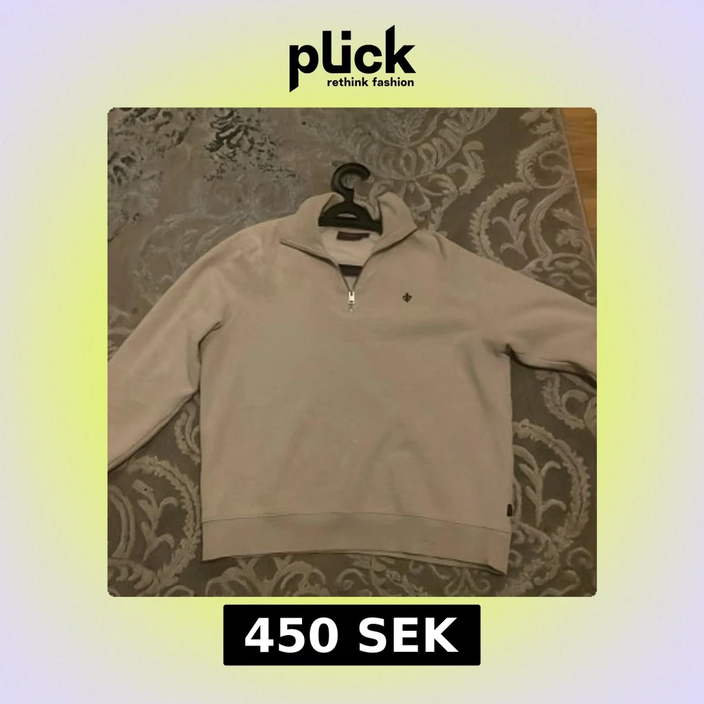 Säljer en stilren beige tröja från Morris med half zip och hög krage. Tröjan har en liten broderad logga på bröstet och är långärmad med ribbade muddar. Perfekt för lager-på-lager och snygg till jeans eller chinos.