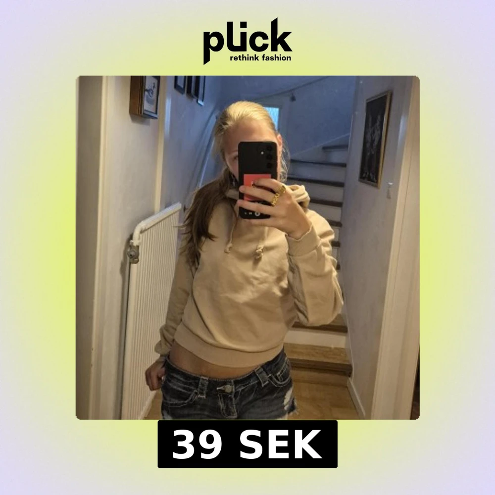 Snygg beige hoodie med huva och snörning från NA-KD. För liten för mig, stl xxs. Använd en hel del men inga noppror eller liknande. Har en färgfläck på armen. (se bild 4) Går möjligtvis bort i ordentlig tvätt!
