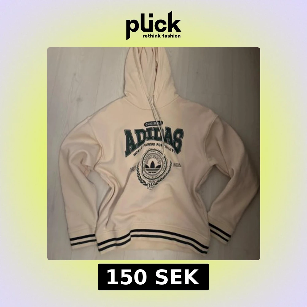 Säljer en snygg beige hoodie från Adidas med tryck i grönt och svart 💕