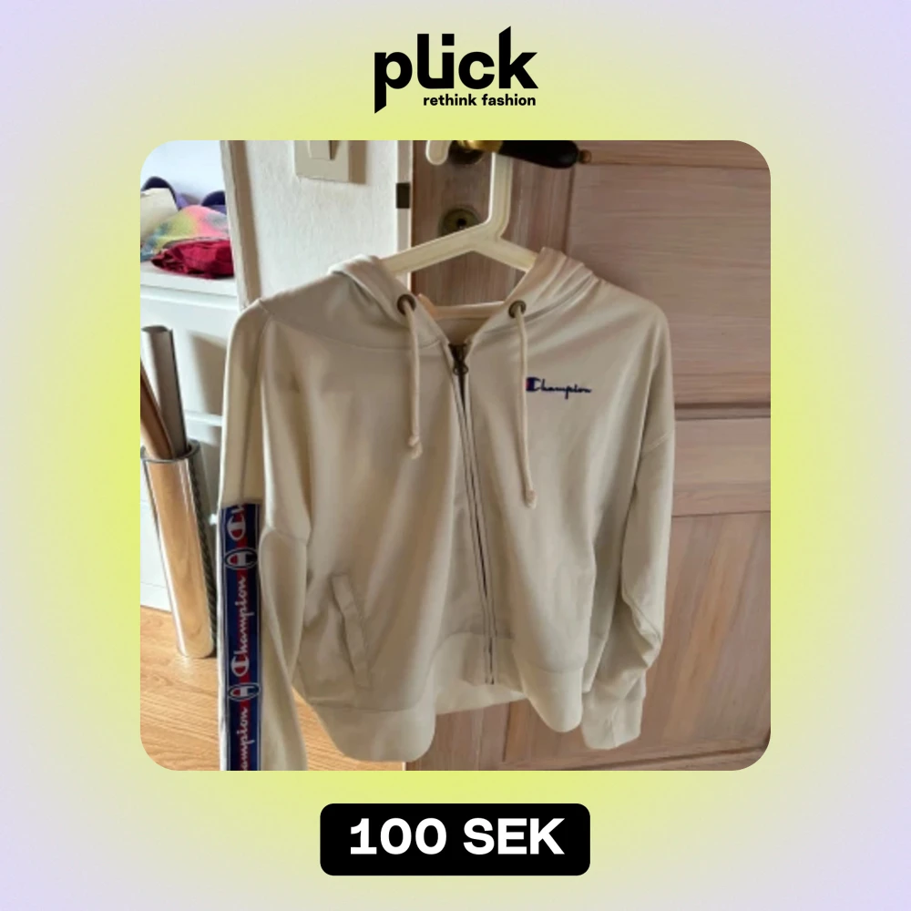 Säljer en snygg vit hoodie från Champion i storlek S. Den har en dragkedja framtill och långa ärmar med coola Champion-loggor längs sidorna. Perfekt för en avslappnad stil och passar bra till både höst och vår. Superbekväm och i bra skick!