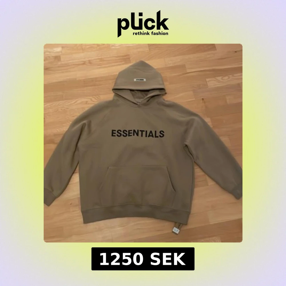 Säljer en snygg beige hoodie från Essentials med texten 'ESSENTIALS' tryckt på framsidan. Hoodien har en klassisk design med en stor ficka framtill och en bekväm huva. Perfekt för en avslappnad stil. Hör av er skulle kunna gå ner ganska mycket på denna eftersom att jag köpte fel storlek