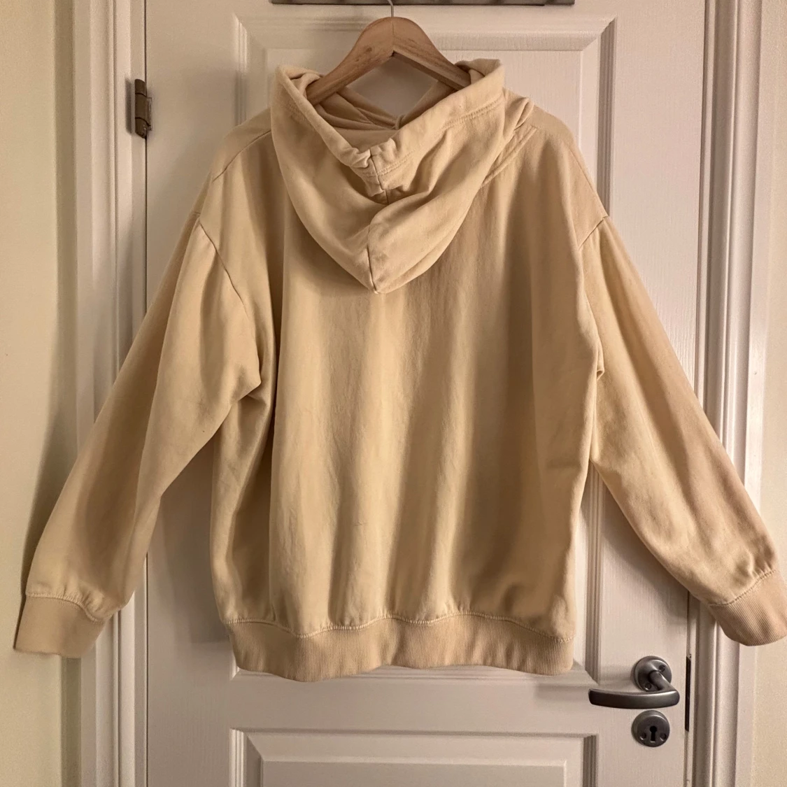 Säljer en beige hoodie från H&M Basics. Den har en klassisk känguruficka och justerbar huva med dragsko. Perfekt för en avslappnad stil. Passar bra till både jeans och mjukisbyxor.