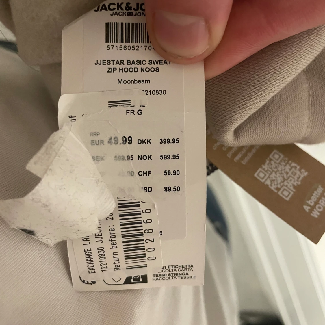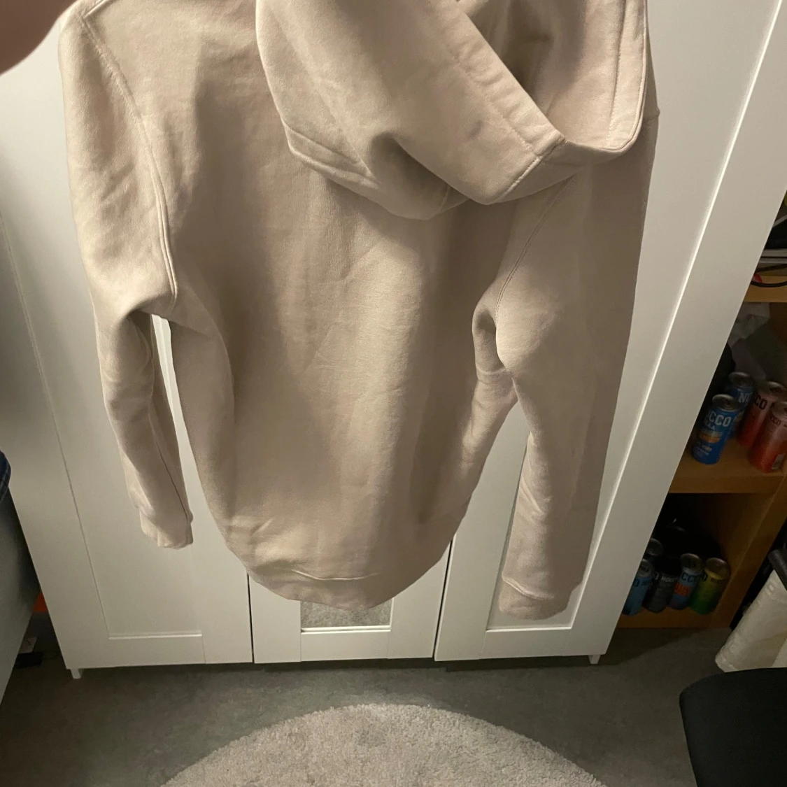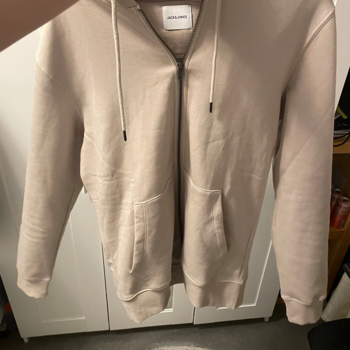 Säljer en stilren beige hoodie från Jack & Jones. Den har dragkedja framtill och en klassisk huva med snörning. Perfekt för en avslappnad look. Storleken är inte specificerad, men den ser ut att ha en normal passform. Har aldrig använts förutom när jag tog bilden. Ny pris 600kr