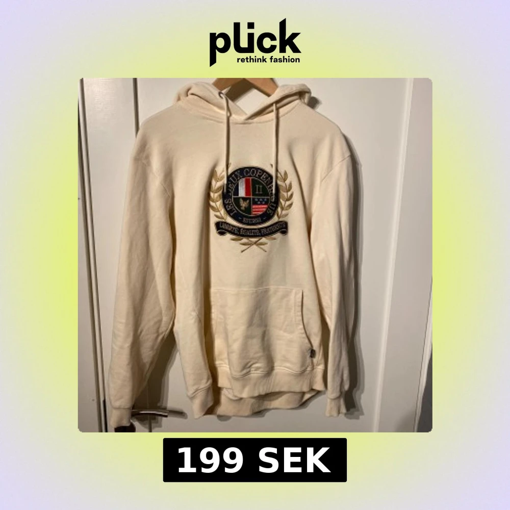 Snygg beige hoodie från Les Deux . Tröjan har huva med snörning, magficka och ribbade muddar.