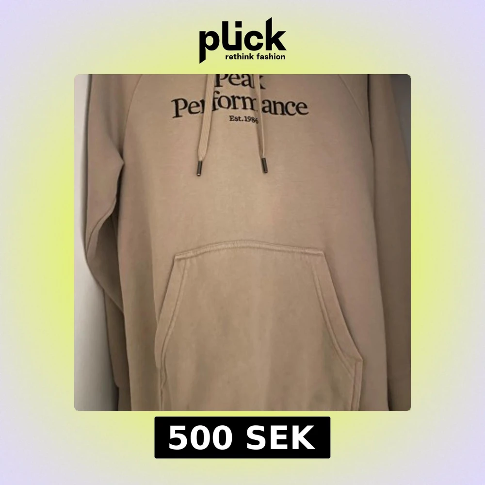 Säljer en stilren beige hoodie från Peak Performance med tryck framtill. Den har en stor ficka och justerbar huva med snören. Perfekt för en avslappnad look.