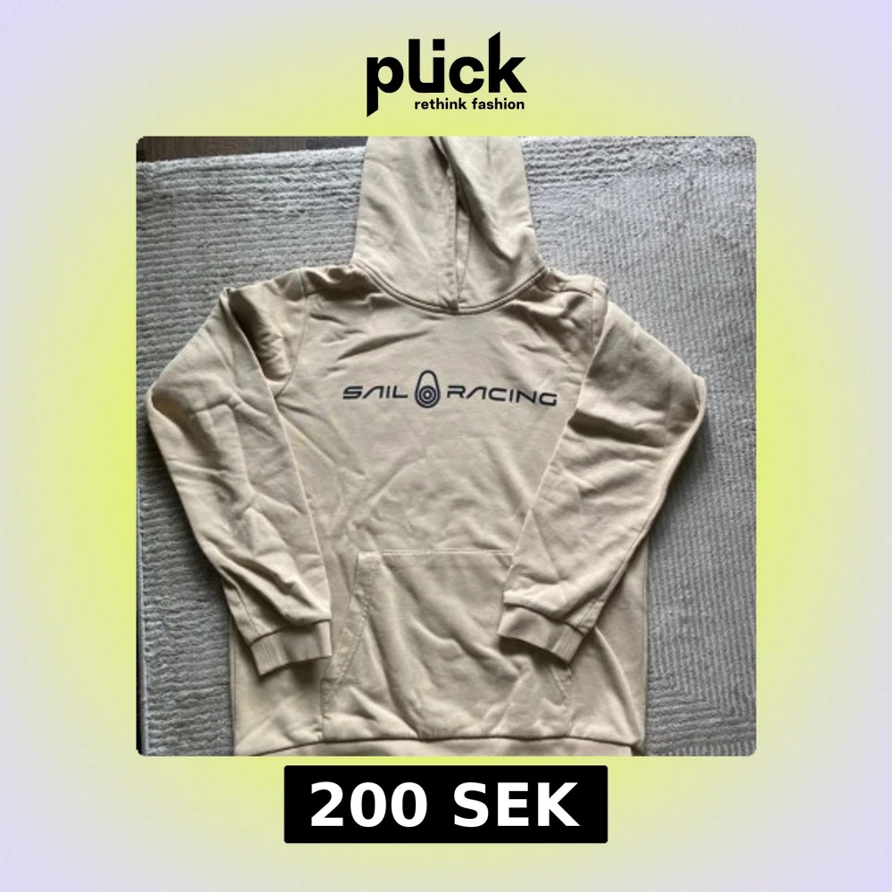 Snygg beige hoodie från Sail Racing med svart logga framtill. Klassisk känguruficka och huva, perfekt för chill dagar. Mjuk insida och ribbade muddar vid ärmslut och nederkant. Passar dig som gillar enkel och stilren streetwear.