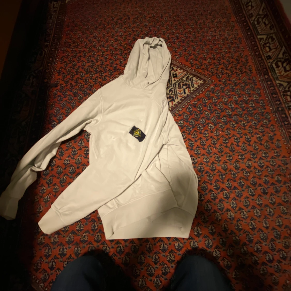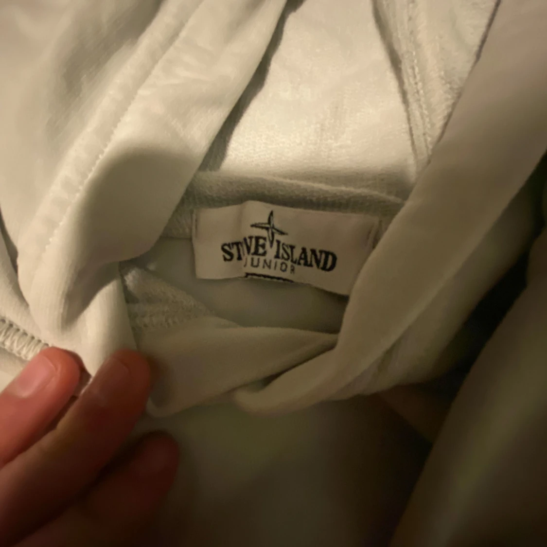Säljer en stilren beige hoodie från Stone Island Junior. Den har en klassisk design med huva och långa ärmar. Perfekt för en avslappnad look.
