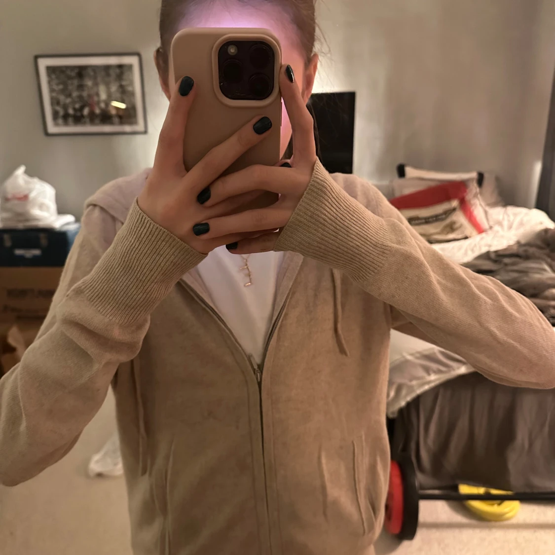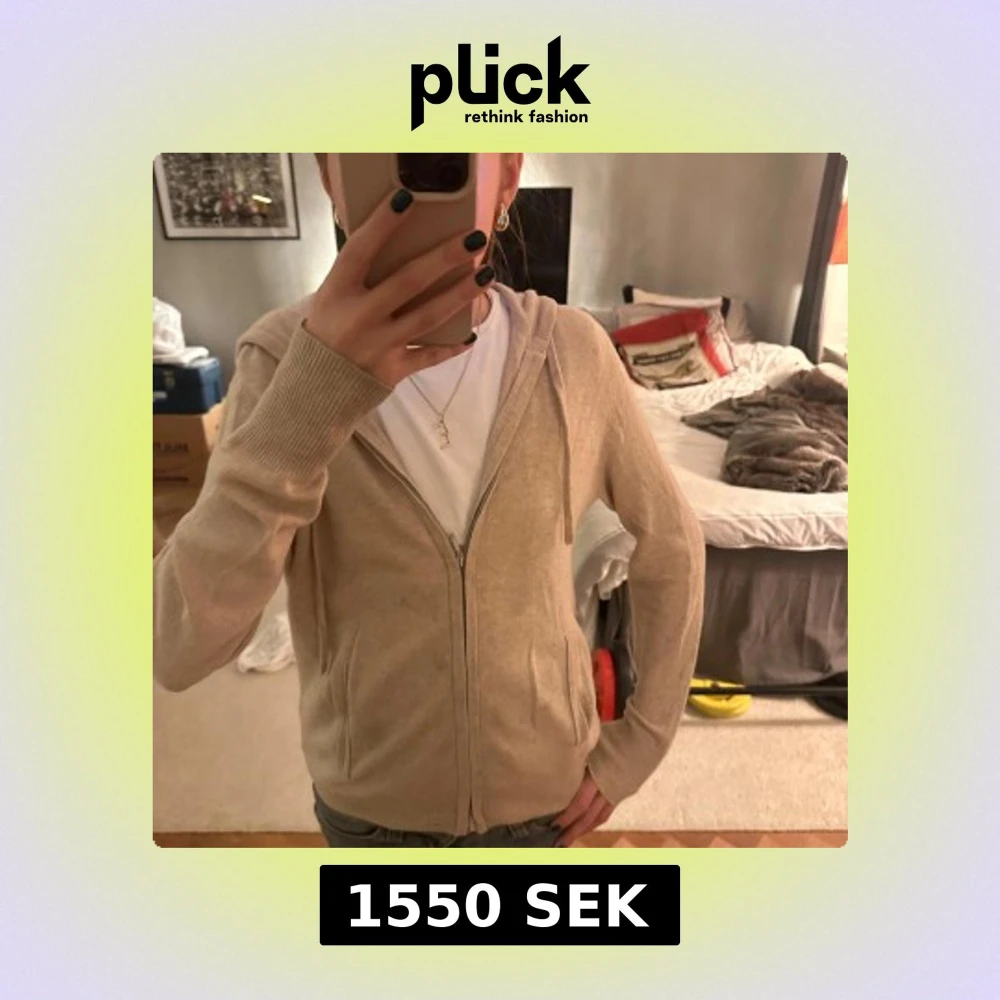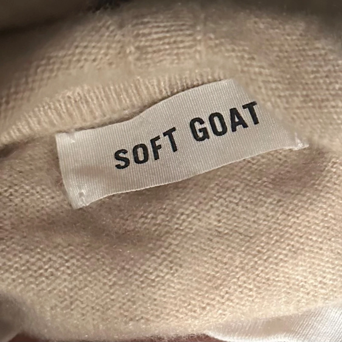 Säljer en supermjuk beige hoodie från Soft Goat i kashmir. Tröjan har huva, dragkedja framtill och två fickor. Jätte skön att ha på sig!