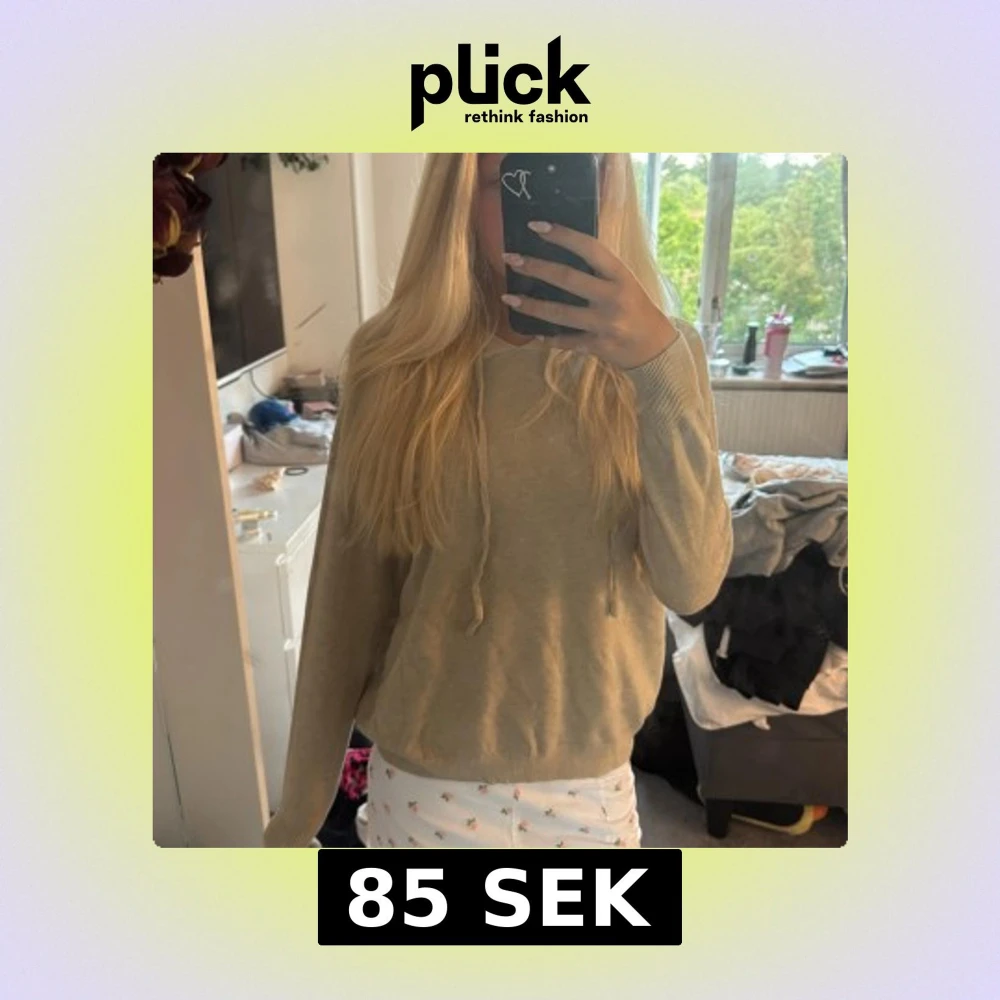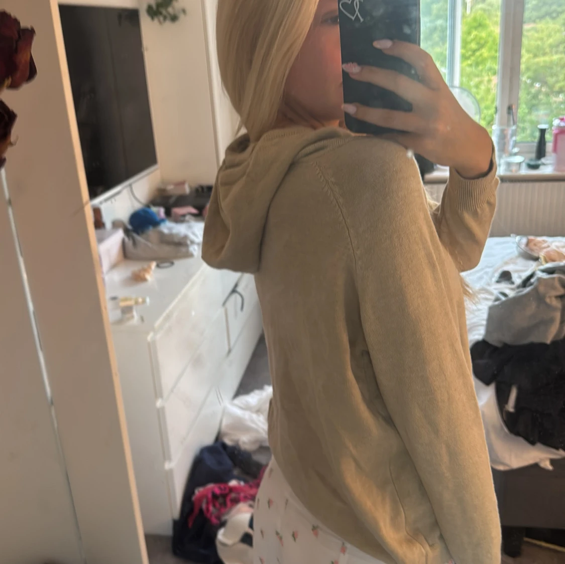 Säljer en beige hoodie med huva och snörning framtill. Tröjan har långärmad passform och ribbade muddar vid ärmslut och nederkant. Perfekt för en chill och avslappnad stil. Supermjuk och enkel att matcha med det mesta. 🥰