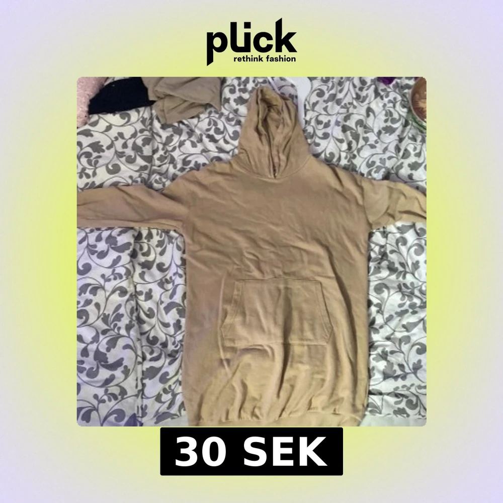 Säljer en beige hoodie från Etab. 1999 i storlek 150. Tröjan har en klassisk huva och en stor magficka framtill. Perfekt för en avslappnad stil och enkel att matcha med det mesta.