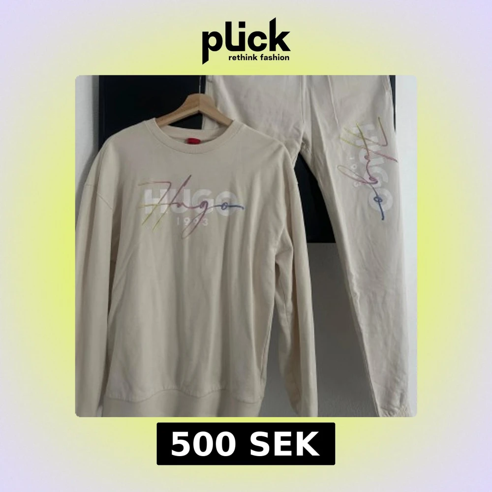 Snyggt beige mjukisset från Hugo med färgglatt tryck på benet & bröstet. Perfekta för en avslappnad stil med elastiska muddar vid bensluten.