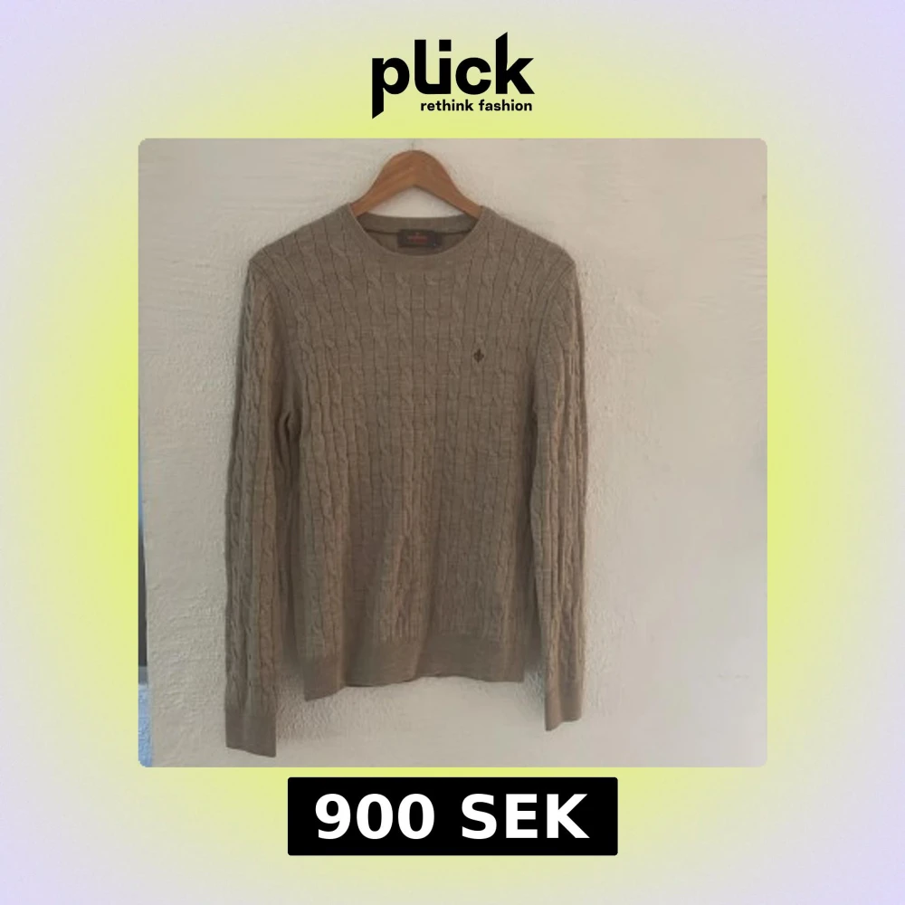 Kabelstickad beige tröja från Morris i 100% merinoull. Klassisk rund halsringning, diskret broderad logga på bröstet och ribbade muddar. Perfekt för dig som gillar stilren klädstil. Den är helt ny, aldrig använd. Köpt för 1200. Hör av er om minsta fundering.
