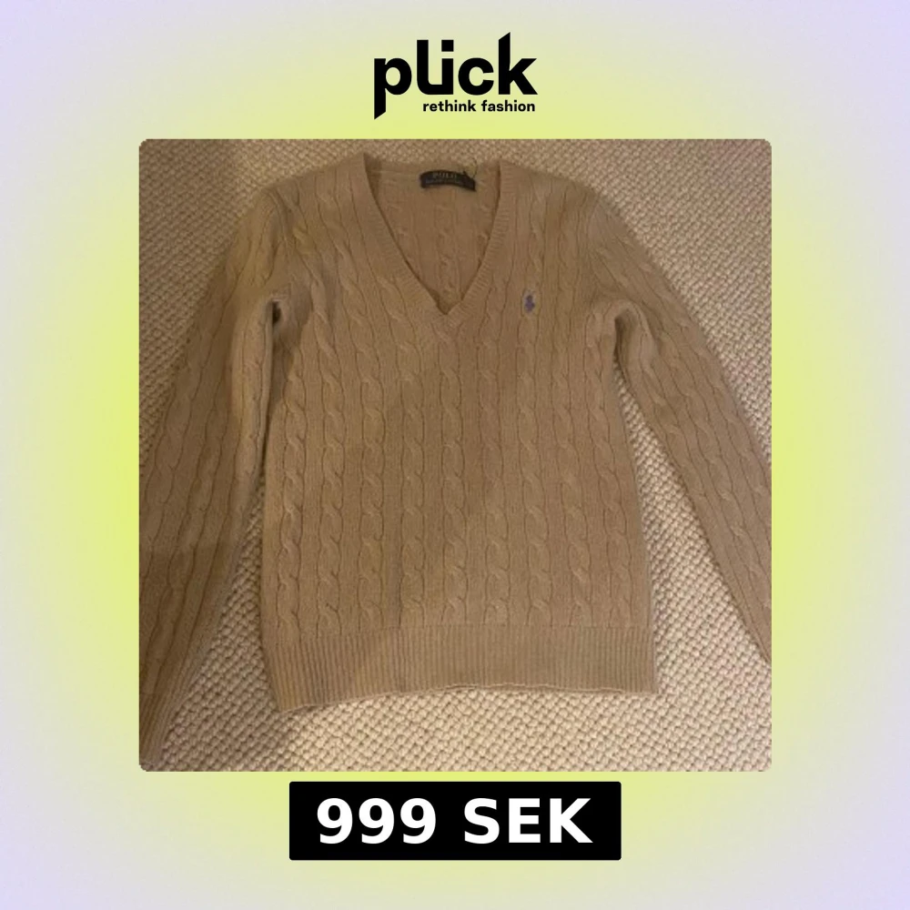 Säljer en beige kabelstickad tröja från Polo Ralph Lauren i storlek S. Tröjan har v-ringad hals, långärmade ärmar och ett litet broderat logomärke i lila på bröstet. Ribbstickade muddar vid ärmslut och nederkant ger en snygg passform.