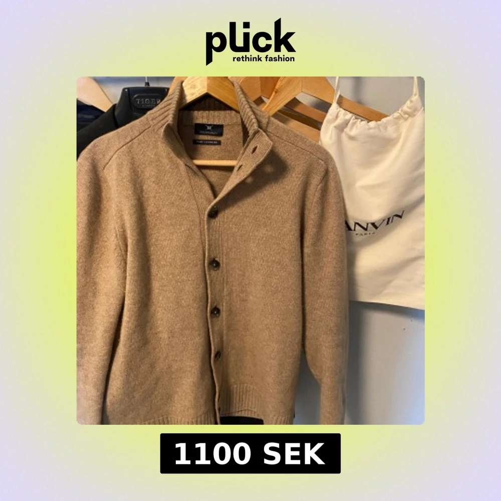 Säljer en lyxig beige cardigab från Strokesman's i 100% kashmir. Storlek L passar M. Koftan har lång ärm, ribbade muddar och knäppning framtill med mörka knappar. Perfekt för dig som vill ha något mjukt och stilrent i garderoben.