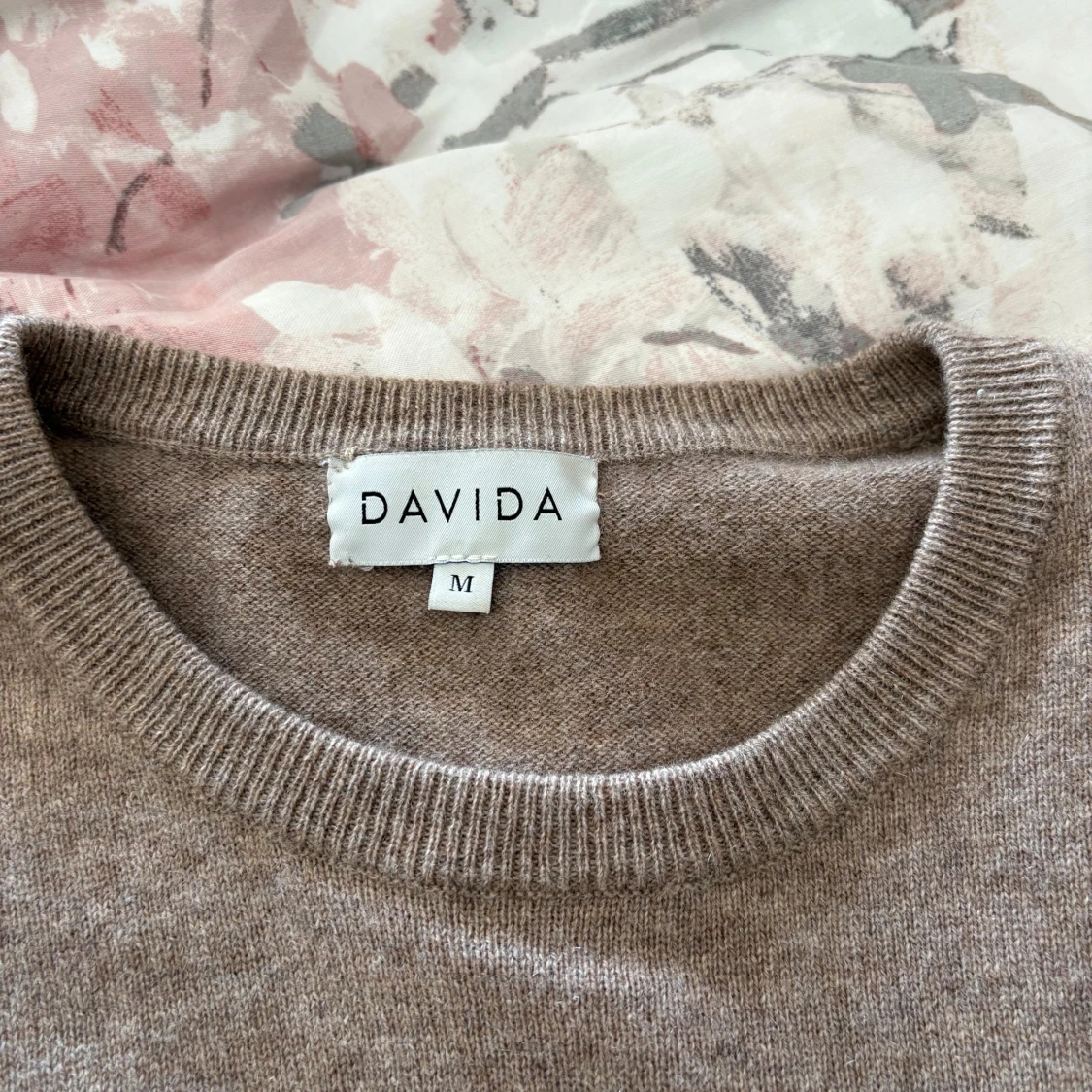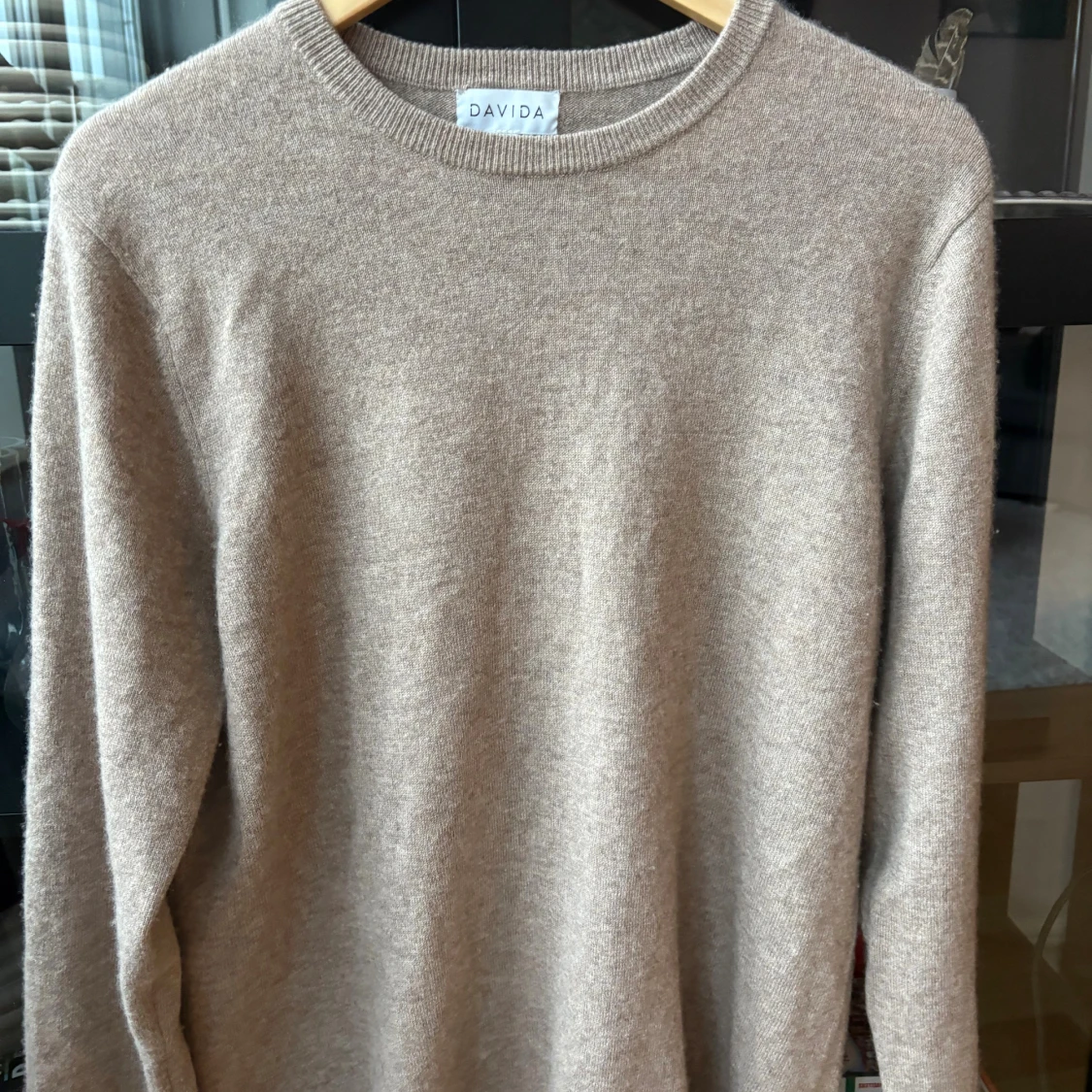 Mjuk och stilren beige tröja från Davida i kashmir. Andvänd ett fåtal gånger. Klassisk rund halsringning och långärmad modell, perfekt för lager-på-lager. Enkel design som är lätt att matcha med olika outfits.
