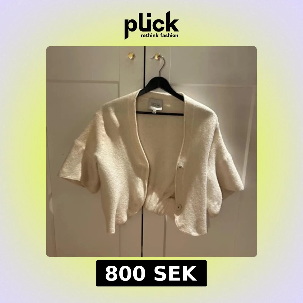Säljer en stilren beige kofta från Dagmar. Koftan har korta ärmar och knappar framtill. Perfekt för lager-på-lager-stil och ger en elegant touch till din outfit.