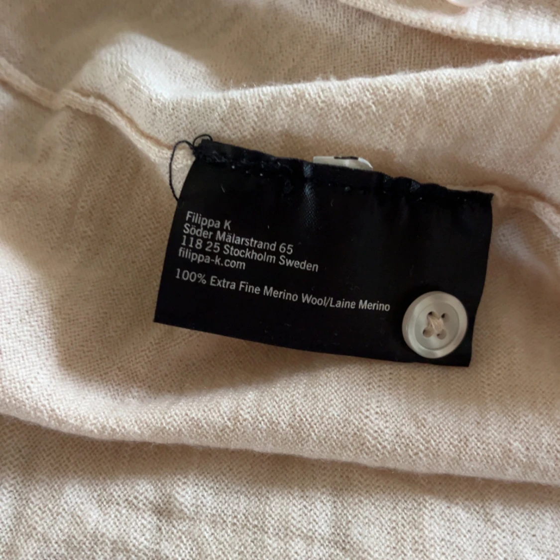 Säljer en elegant beige kofta från Filippa K i 100% extra fin merinoull. Koftan har långa ärmar och en enkel knäppning framtill. Använd runt 2 gånger och är i super skick💘Nypris 1700