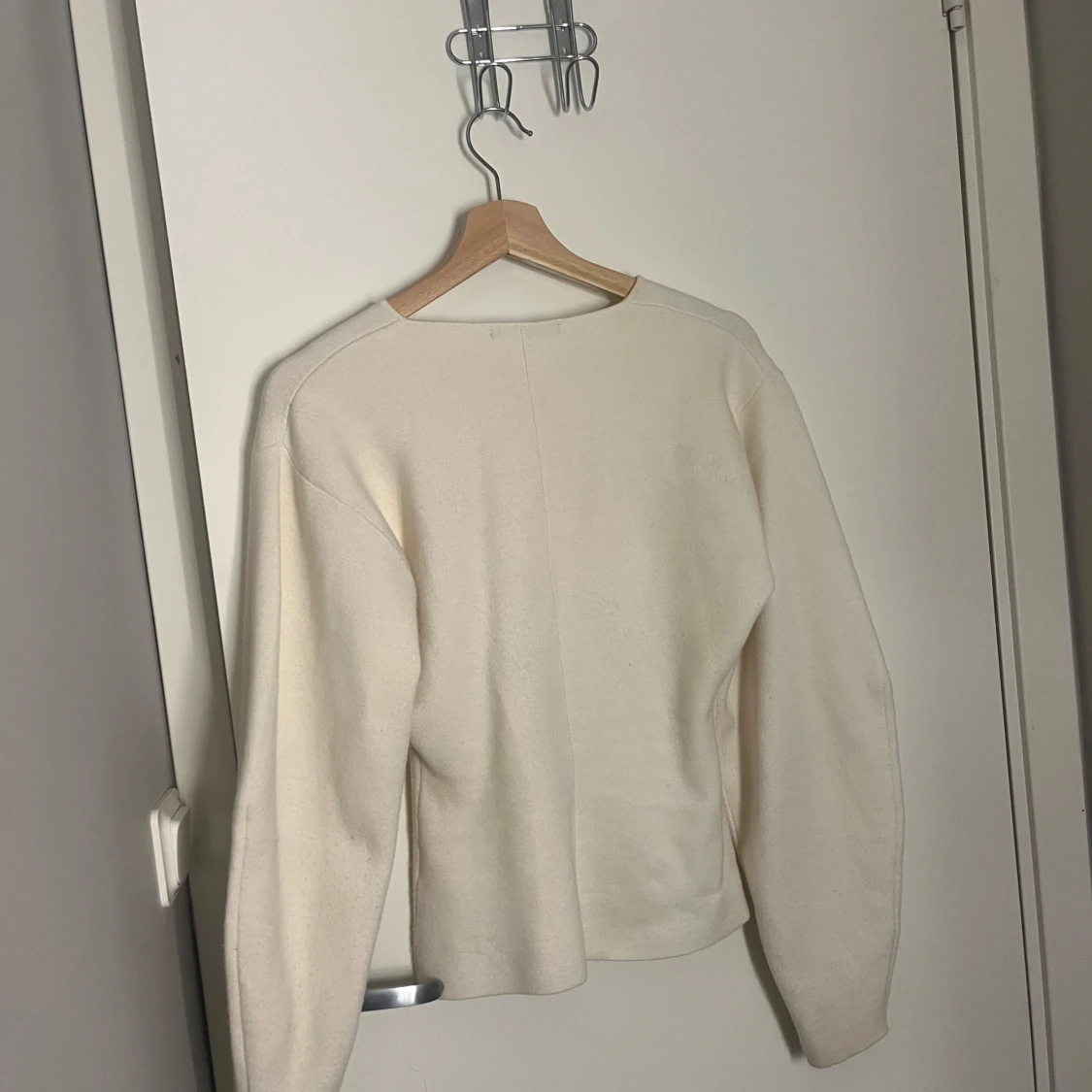 Snygg beige kofta från Gina Tricot med rund hals och långa ärmar. Koftan har en rak passform och knäpps med små silvriga knappar framtill. Mjuk och skön, perfekt att slänga på sig när det är lite kyligt ute.