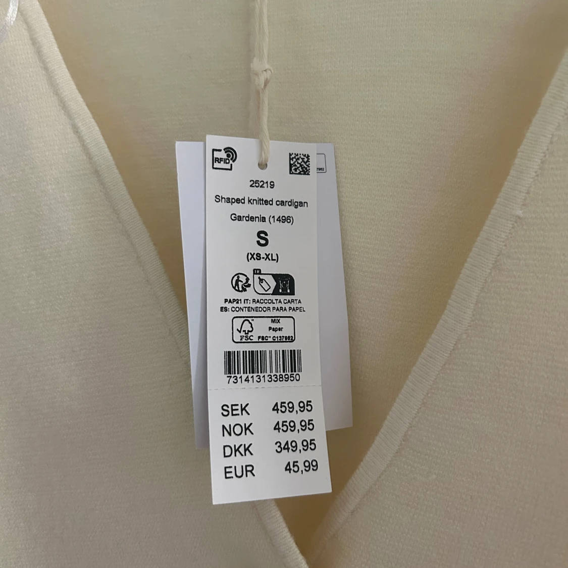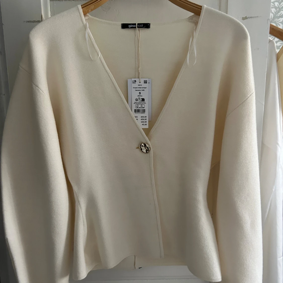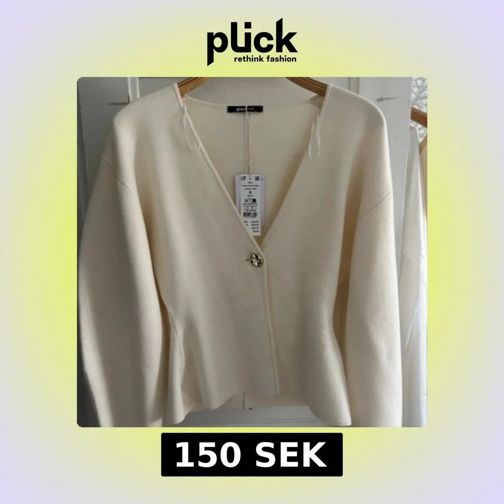 Superfin beige kofta från Gina Tricot med v-ringning och en snygg guldig knapp framtill. Aldrig använd och prislapp sitter kvar