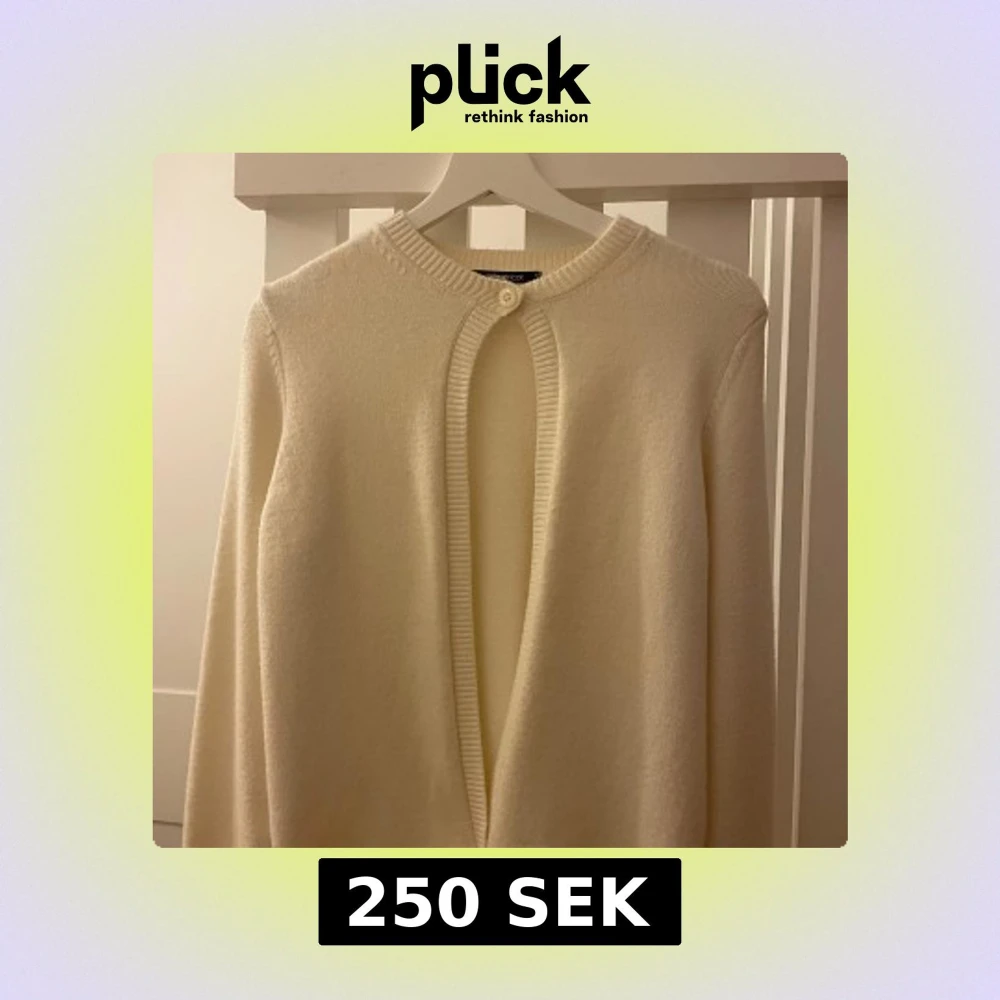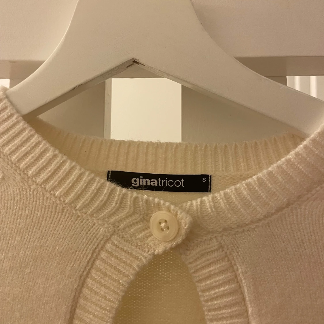 Superfin beige kofta från Gina Tricot i mjukt stickat material. Klassisk rund halsringning, långärmad och stängs med en knapp upptill. Perfekt att slänga över en topp för en clean och stilren look.