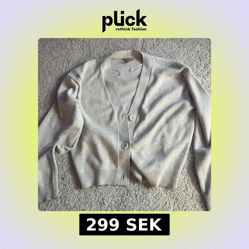 Säljer en stilren beige kofta från H&M. Den har en klassisk design med knappar framtill och ribbade muddar vid ärmslut och nederkant. Perfekt för lager-på-lager under kyligare dagar. 🧥