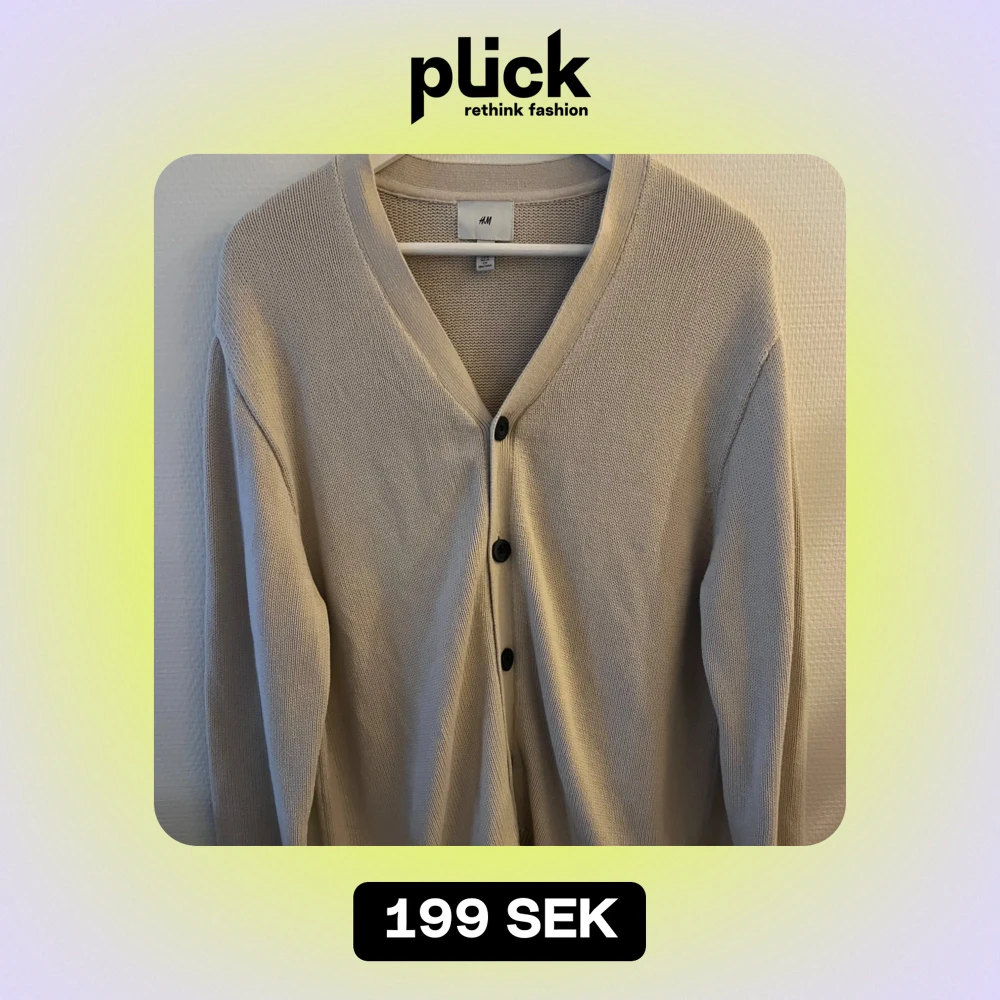 Säljer en stilren beige kofta från H&M med knappar framtill. Perfekt för lager-på-lager under kyligare dagar. Koftan har en mjuk och bekväm passform med långa ärmar.