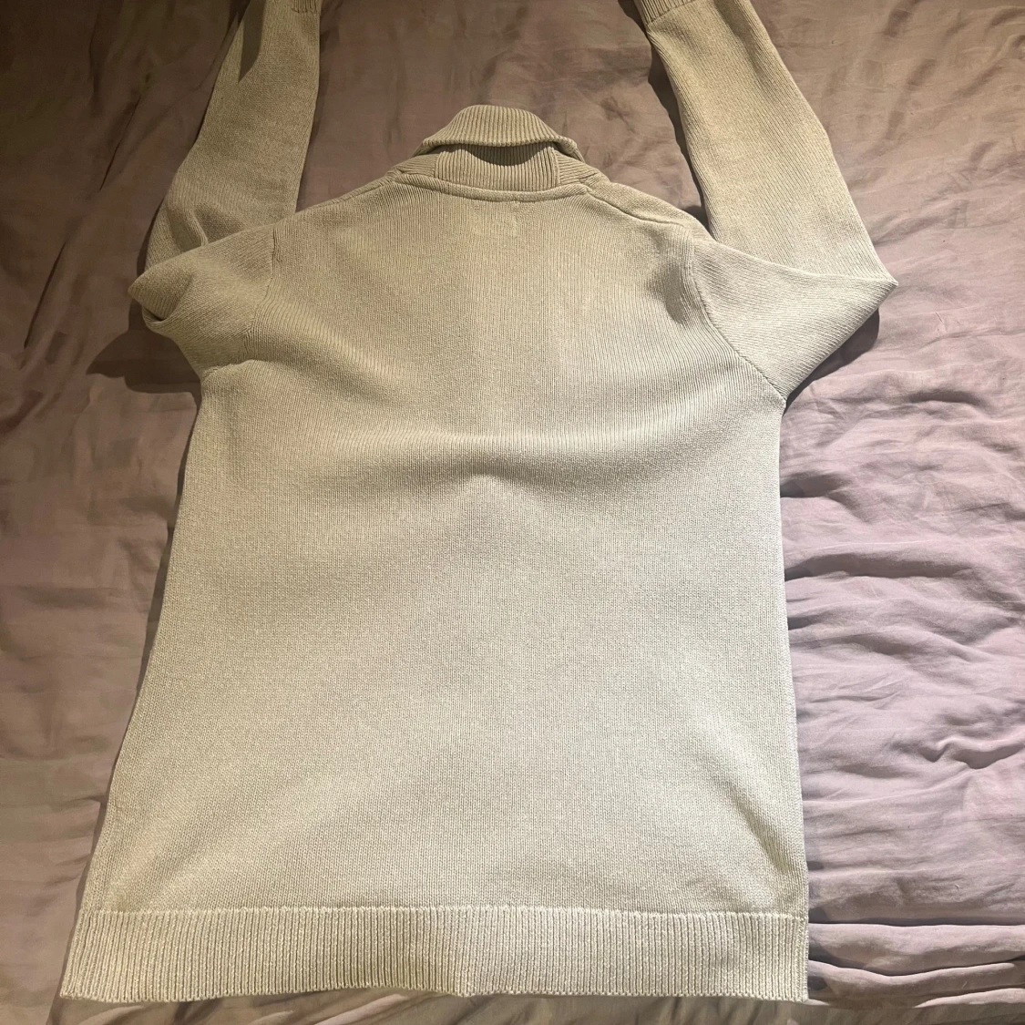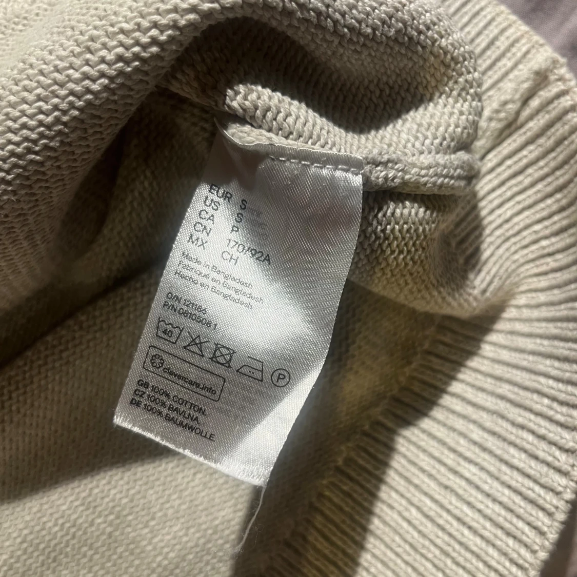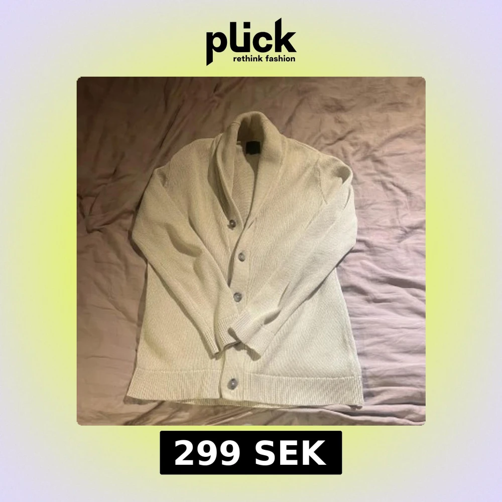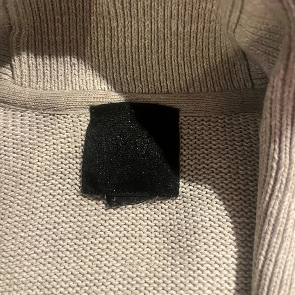Snygg beige kofta från H&M i storlek S, tillverkad i 100% bomull. Koftan har långärmad design, bred krage och knäppning med fyra knappar framtill. Ribbstickade muddar vid ärmslut och nederkant ger en clean och stilren look.
