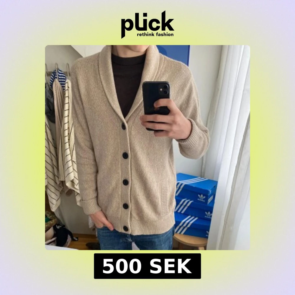 Säljer en beige kofta från Hollister i storlek M. Koftan har stora svarta knappar, sjalkrage och två fickor framtill. Den är stickad och har ribbade muddar vid ärmslut och nederkant. Perfekt för lager-på-lager under hösten eller vintern.