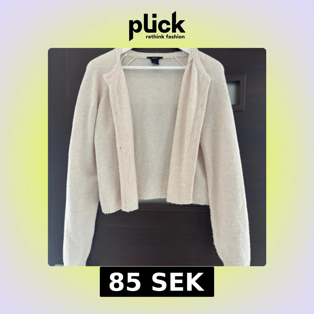 Supermysig beige kofta från Lindex i stickad kvalitet. Koftan har långa ärmar, ribbade kanter och knappar framtill. Perfekt att slänga över en t-shirt eller linne när det blir lite kyligt. Enkel och stilren design som funkar till allt. Tröjan är lite nopprig.